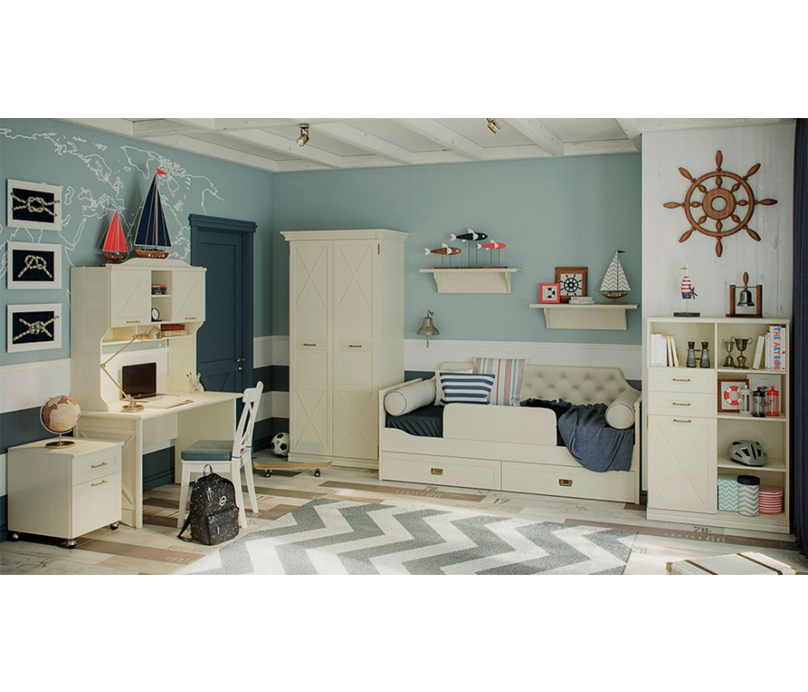 Состав:Кровать Кантри КА-830.25, Д1 — 1 шт;Мягкий элемент Кантри КА-900.25 — 1 шт;Мягкий бортик безопасности Кантри КА-930.01 — 1 шт;Шкаф Кантри КА-202.01 — 1 шт;Шкаф Кантри КА-266.05, Д1 — 1 шт;Стол письменный Кантри КА-504.09, Д1 — 1 шт;Стеллаж-надстройка Кантри КА-720.02, Д1 — 1 шт;Тумба Кантри КА-302.06, Д1 — 1 шт;Полка Кантри КА-022.03,Д1 — 2 шт;Комплект цоколей Кантри КА-012.03 — 1 шт;Карниз Кантри КА-013.03 — 2 шт.Особенности:Коллекция Кантри — это атмосфера домашнего уюта и тепла. Детская Кантри отправляет нас в безмятежный загородный дом, наполненный солнечным светом, спокойствием и гармонией;Здесь можно сосредоточиться на важной работе, заняться творчеством или расслабиться и отдохнуть после трудного учебного дня;Создайте максимально комфортное пространство для ребенка, окружите его теплом и заботой вместе с новой подростковой Кантри.Характеристики:Цвет: валенсия;Цвет лицевой фурнитуры: античная бронза;Фасады с декоративными элементами — фахверками из композитного материала и декоративными профилями из МДФ;Для отдельно стоящих шкафов необходимо крепление к стене;Размер спального места: 90 х 200 см;Основание кровати — ортопедическое. Матрас приобретается отдельно;Мягкий бортик безопасности устанавливается на переднюю царгу.Материалы:Мебель сделана из ламинированной плиты ДСП класса эмиссии Е1;Фасады: рамочной конструкции из профиля МДФ, окутанного бумагой с «финиш-эффектом», вставки из ЛДСП 0,6 см;Для облицовывания кромок деталей используется высококачественный материал производства Германии, Австрии;Задние стенки шкафов: ДВП;Регулируемые металлические опоры скрыты декоративным цоколем из профиля МДФ;Для детской используется крепежная фурнитура и механизмы ведущих производителей (Titus, Hettich);Петли Sensys оснащены демпфером для плавного закрывания дверей;В выдвижных ящиках используется система скрытых направляющих Quadro (Hettich, Германия) с функцией «встроенного демпфера». Это позволяет легко и почти бесшумно выдвигать-задвигать ящики, а также обеспечивает надежную фиксацию ящика и гарантирует длительный срок службы даже при высокой нагрузке.