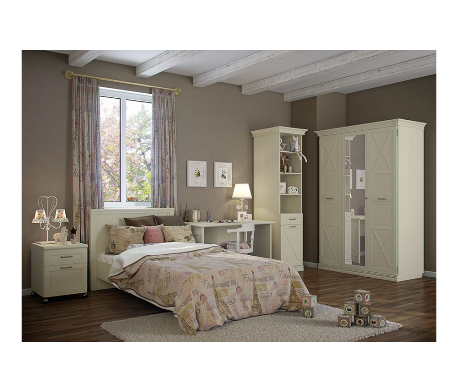 Состав:Кровать Кантри КА-800.25(С2) — 1 шт.;Стеллаж Кантри КА-708.01, Д1 — 1 шт.;Стол письменный Кантри КА-504.09, Д1 — 1 шт.;Тумба Кантри КА-302.06, Д1 — 1 шт.;Комплект карнизов Кантри КА-013.04 — 1 шт.;Комплект цоколей Кантри КА-012.01 — 1 шт.;Шкаф Кантри КА-172.03 — 1 шт.Характеристики:Цвет: Валенсия;Цвет лицевой фурнитуры: античная бронза;Фасады с декоративными элементами — фахверками из композитного материала и декоративными профилями из МДФ;Для отдельно стоящих шкафов необходимо крепление к стене;Основание кровати — ортопедическое. Матрас приобретается отдельно;Размер спального места: 90 х 200 см;В габаритах указаны размеры кровати;Зеркало не входит в стоимость композиции.Материалы:Мебель сделана из ламинированной плиты ДСП класса эмиссии Е1;Фасады: рамочной конструкции из профиля МДФ, окутанного бумагой с «финиш-эффектом», вставки из ЛДСП 0,6 см,Для облицовывания кромок деталей используется высококачественный материал производства Германии, Австрии;Задние стенки шкафов: ДВП;Регулируемые металлические опоры скрыты декоративным цоколем из профиля МДФ;Для детской используется крепежная фурнитура и механизмы ведущих производителей (Titus, Hettich);Петли Sensys оснащены демпфером для плавного закрывания дверей;В выдвижных ящиках используется система скрытых направляющих Quadro (Hettich, Германия) с функцией «встроенного демпфера». Это позволяет легко и почти бесшумно выдвигать-задвигать ящики, а также обеспечивает надежную фиксацию ящика и гарантирует длительный срок службы даже при высокой нагрузке.