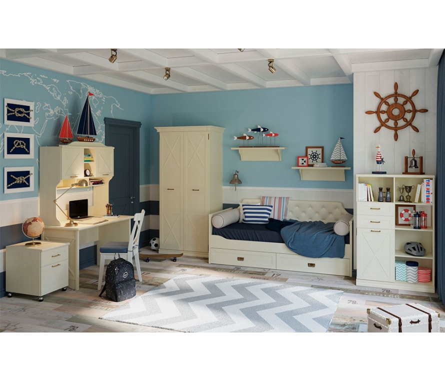 Состав:Шкаф Кантри КА-202.01 — 1 шт;Комплект цоколей Кантри КА-012.03 — 1 шт;Карниз Кантри КА-013.03 — 2 шт;Кровать Кантри КА-830.25, Д1 — 1 шт;Мягкий элемент Кантри КА-900.25 — 1 шт;Полка Кантри КА-022.03,Д1 — 2 шт;Шкаф Кантри КА-266.05, Д1 — 1 шт;Стол письменный Кантри КА-504.09, Д1 — 1 шт;Стеллаж-надстройка Кантри КА-720.02, Д1 — 1 шт;Тумба Кантри КА-302.06, Д1 — 1 шт.Характеристики:Цвет: валенсия;Цвет лицевой фурнитуры: античная бронза;Фасады с декоративными элементами — фахверками из композитного материала и декоративными профилями из МДФ;Для отдельно стоящих шкафов необходимо крепление к стене;Размер спального места: 90 х 200 см;Матрас в стоимость не входит и приобретается отдельно.Материалы:Корпуса: ЛДСП;Фасады: рамочной конструкции из профиля МДФ, окутанного бумагой с «финиш-эффектом», вставки из ЛДСП 0,6 см;Для облицовывания кромок деталей используется высококачественный материал производства Германии, Австрии;Задние стенки шкафов: ДВП;Регулируемые металлические опоры скрыты декоративным цоколем из профиля МДФ;Для детской используется крепежная фурнитура и механизмы ведущих производителей (Titus, Hettich).