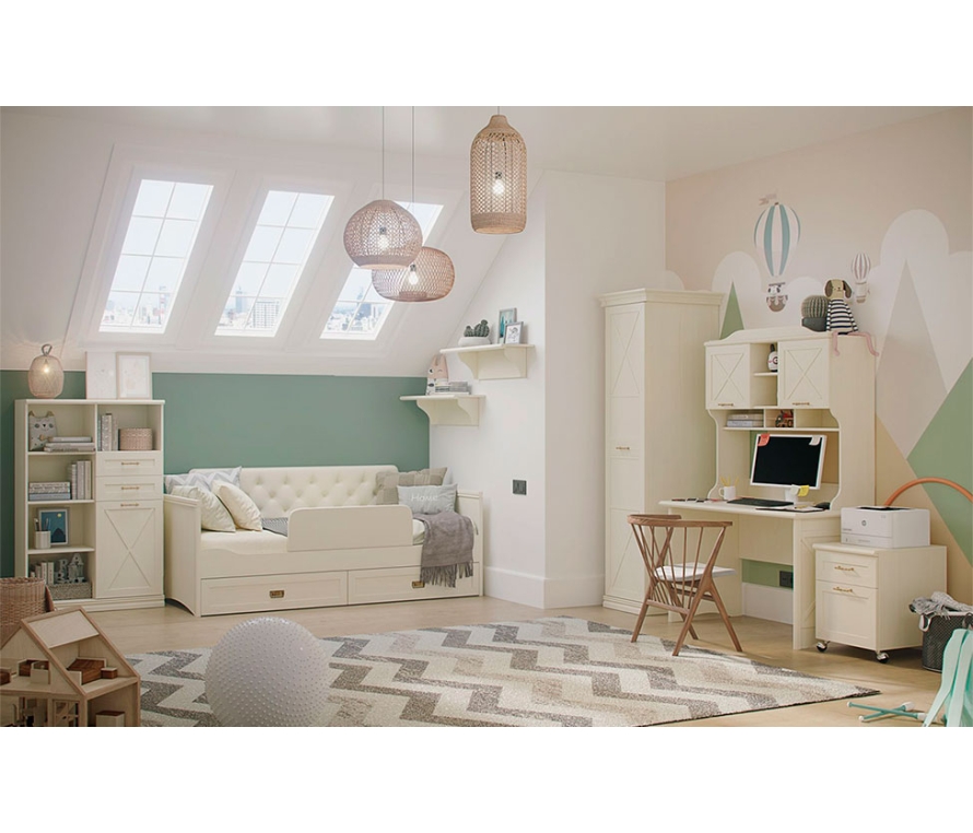 Состав:Шкаф Кантри КА-266.05, Д1 — 1 шт;Кровать Кантри КА-830.25, Д1 — 1 шт;Шкаф Кантри КА-212.01 — 1 шт;Мягкий элемент Кантри КА-900.25 — 1 шт;Мягкий бортик безопасности Кантри КА-930.01 — 1 шт;Стол письменный Кантри КА-504.09, Д1 — 1 шт;Стеллаж-надстройка Кантри КА-720.02, Д1 — 1 шт;Тумба Кантри КА-302.06, Д1 — 1 шт;Полка Кантри КА-022.03,Д1 — 2 шт;Карниз Кантри КА-013.03 — 2 шт;Комплект цоколей Кантри КА-012.03 — 1 шт.Особенности:Коллекция Кантри — это атмосфера домашнего уюта и тепла. Детская Кантри отправляет нас в безмятежный загородный дом, наполненный солнечным светом, спокойствием и гармонией;Здесь можно сосредоточиться на важной работе, заняться творчеством или расслабиться и отдохнуть после трудного учебного дня;Создайте максимально комфортное пространство для ребенка, окружите его теплом и заботой вместе с новой подростковой Кантри.Характеристики:Цвет: валенсия;Цвет лицевой фурнитуры: античная бронза;Для отдельно стоящих шкафов необходимо крепление к стене;Основание кровати — ортопедическое. Матрас приобретается отдельно;Мягкий бортик безопасности устанавливается на переднюю царгу.Материалы:Мебель сделана из ламинированной плиты ДСП класса эмиссии Е1;Фасады: рамочной конструкции из профиля МДФ, окутанного бумагой с «финиш-эффектом», вставки из ЛДСП 0,6 см;Для облицовывания кромок деталей используется высококачественный материал производства Германии, Австрии;Задние стенки шкафов: ДВП;Регулируемые металлические опоры скрыты декоративным цоколем из профиля МДФ;Для детской используется крепежная фурнитура и механизмы ведущих производителей (Titus, Hettich);Петли Sensys оснащены демпфером для плавного закрывания дверей;В выдвижных ящиках используется система скрытых направляющих Quadro (Hettich, Германия) с функцией «встроенного демпфера». Это позволяет легко и почти бесшумно выдвигать-задвигать ящики, а также обеспечивает надежную фиксацию ящика и гарантирует длительный срок службы даже при высокой нагрузке.