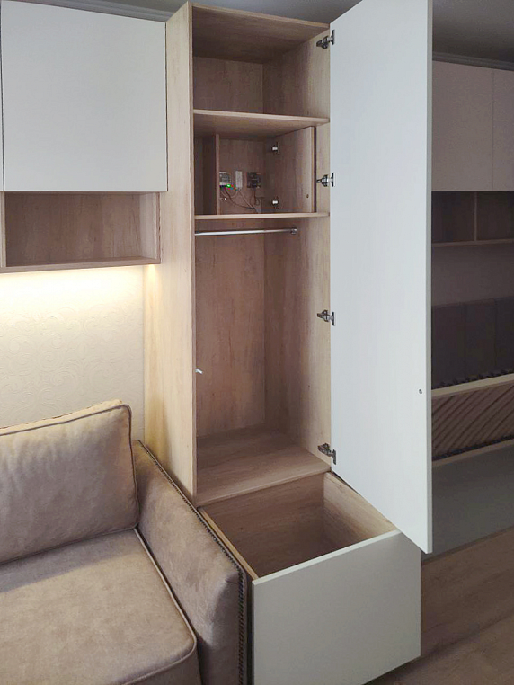 Внутреннее наполнение: полки, ящики, подсветка