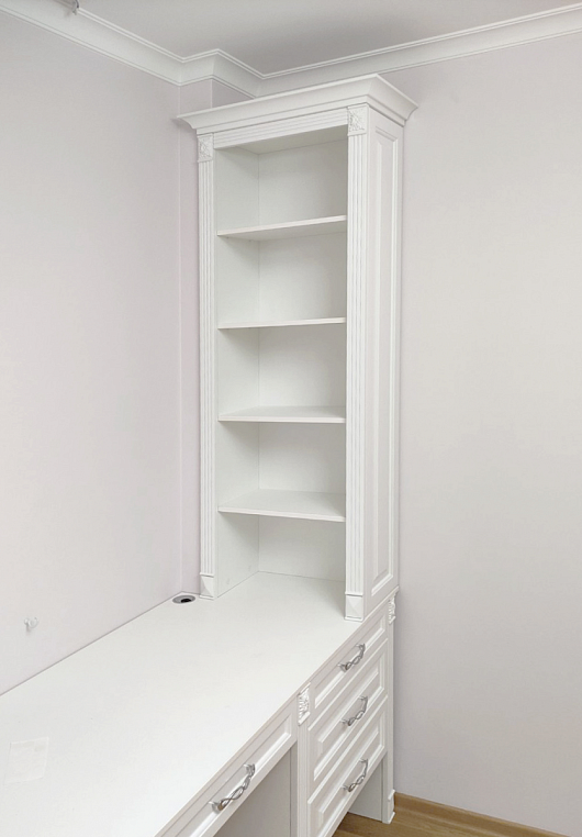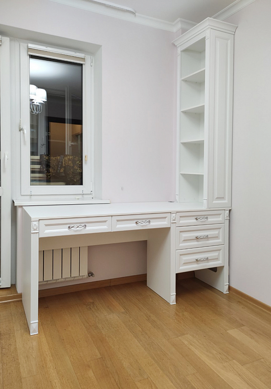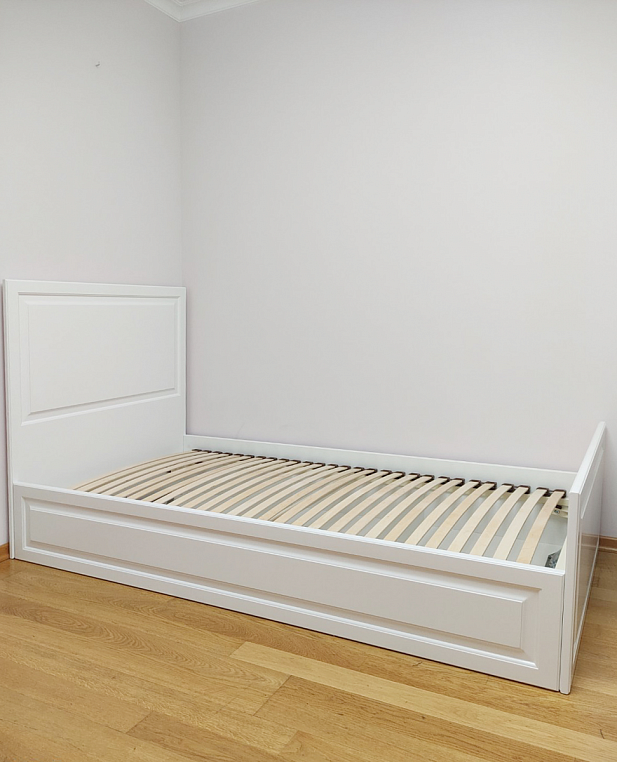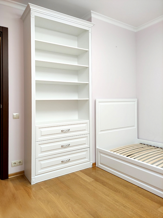 Кровать: 1140*2060*1073 мм. Книжный шкаф: 2400*1000*384 мм Рабочая зона: 2400*1842*600 мм Шкаф распашной: 2400*1200*600 мм *Указана стоимость в минимальной комплектации без учета стоимости услуг