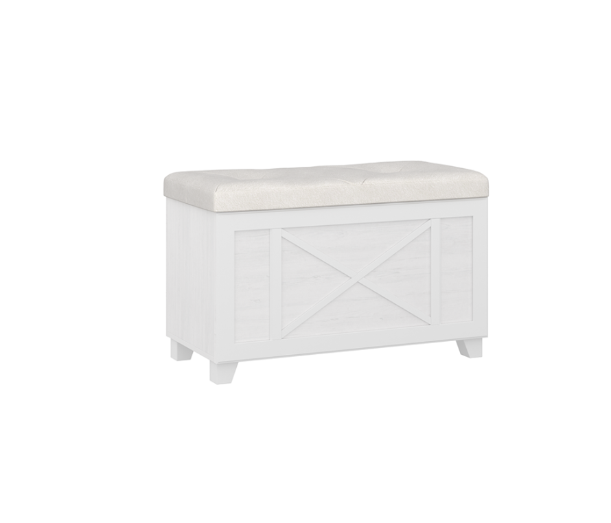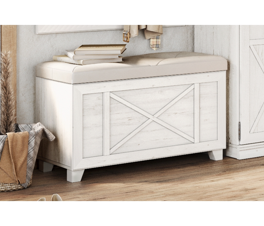 Изящная банкетка со стильными скошенными опорами дополнит не только классический интерьер, но и любую современную обстановку. Мягкий оттенок «блан-шене» позволяет создать особую атмосферу домашнего уюта. Общий стиль подчеркивает декоративный элемент фахверк.Меблировка выполнена из ламинированной ДСП и МДФ-профиля. Откидная крышка имеет мягкую отделку сверху, а ее петли оснащены демпфером для плавного и бесшумного закрывания. Все кромки облицованы качественным материалом.Изделие подойдет для украшения прихожей, спальни, гостиной, будет гармонично выглядеть с другими элементами из коллекции «Кантри». Для покупки банкетки воспользуйтесь соответствующим разделом интернет-магазина.Характеристики:Цвет: блан-шене;Материал опор: бук;Обивка: микровелюр Avelina 9534;Опоры покрыты эмалью в цвет корпуса;Есть отделение для хранения вещей;Откидной мягкий элемент.Размеры:Высота: 58,1 см;Ширина: 91 см;Глубина: 45 см.