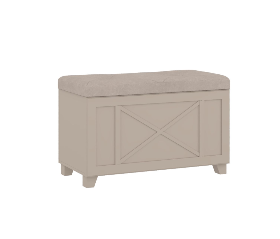 Изящная банкетка со стильными скошенными опорами дополнит не только классический интерьер, но и любую современную обстановку. Мягкий оттенок «кашемир серый» позволяет создать особую атмосферу домашнего уюта. Общий стиль подчеркивает декоративный элемент фахверк.Меблировка выполнена из ламинированной ДСП и МДФ-профиля. Откидная крышка имеет мягкую отделку сверху, а ее петли оснащены демпфером для плавного и бесшумного закрывания. Все кромки облицованы качественным материалом.Изделие подойдет для украшения прихожей, спальни, гостиной, будет гармонично выглядеть с другими элементами из коллекции «Кантри». Для покупки банкетки воспользуйтесь соответствующим разделом интернет-магазина.Характеристики:Цвет: кашемир серый;Материал опор: бук;Обивка: микровелюр Avelina 9534;Опоры покрыты эмалью в цвет корпуса;Есть отделение для хранения вещей;Откидной мягкий элемент.Размеры:Высота: 58,1 см;Ширина: 91 см;Глубина: 45 см.