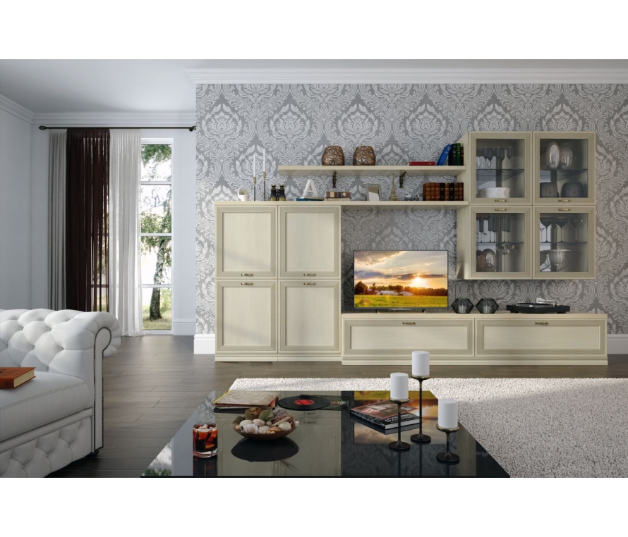 Состав:Шкаф Адажио АГ-260.01 — 2 шт;Тумба Адажио АГ-369.01 — 1 шт;Шкаф навесной Адажио АГ-418.03 — 2 шт;Полка настенная Адажио АГ-026.03 — 1 шт;Полка навесная Адажио АГ-025.03 — 1 шт.Особенности:Адажио — это традиционное прочтение итальянской классики. Мебель из коллекции подойдет не только к классическим интерьерам, но и к гостиным в стилях фьюжн, контемпорари и эклектика;Гостиная Адажио понравится семейным людям, ценителям классики и традиций. Она создана для уютных вечеров с близкими людьми, размеренному чтению любимых книг и просто приятных кинопросмотров за кружкой чая;Гостиная будет гармонировать с пастельными, кремовыми оттенками, оттенками теплого серого. Если же вы хотите добавить акцентов в декоре — используйте глубокие тона синего, зеленого, терракотового.Характеристики:Мебель выполнена в цвете «Валенсия». Фасады вручную покрыты патиной и испанским лаком, который отличается повышенной атмосферо- и светостойкостью и не меняет цвет со временем;Вся лицевая фурнитура в коллекции Адажио выполнена из латуни в стильном оттенке «старая бронза»;В гостиной есть вся необходимая мебель для хранения: два напольных шкафа, два навесных шкафа, тумба с двумя выдвижными ящиками и две вместительные полки. Для самого важного всегда найдется место;У навесных шкафов на задних стенках есть зеркала. Это помогает зрительно расширить комнату.Материалы:Для гостиной используется крепежная фурнитура и механизмы ведущих производителей (Titus, Hettich). Такая фурнитура позволит мебели прослужить дольше, не требуя частого ремонта;Для плавного закрывания дверей используются петли Titus с накладным демпфером (с возможностью регулирования степени «демпфирования»);В выдвижных ящиках используется система скрытых направляющих Quadro (Hettich, Германия) с функцией «стоп-контроль». Это дает возможность легко и почти бесшумно выдвигать-задвигать ящики, а также обеспечивает надежную фиксацию ящика и гарантирует длительный срок службы даже при высокой нагрузке;Полка АГ-025.03 навешивается на стену на декоративных менсолодержателях (МакМарт);Подвеска настенных шкафов итальянского производства Camar.Для создания еще более гармоничного интерьера в гостиную можно дополнительно подобрать кремовый или темный диван классических форм, изящный журнальный столик со стеклянной поверхностью. Если же вы хотите совместить гостиную с рабочей зоной — не забудьте про стол на высоких ножках и мягкое кресло с текстурной обивкой.