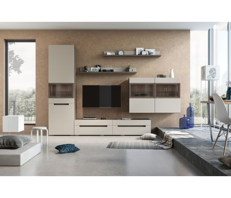 Состав:Полка Анри АН-025.02 — 2 шт;Шкаф Анри АН-224.20 — 1 шт;Шкаф навесной Анри АН-411.04 (правый) — 1 шт;Шкаф навесной Анри АН-411.04 (левый) — 1 шт;Тумба Анри АН-344.01 — 1 шт.Особенности:Гостиная в современном минималистичном стиле. Такая мебель универсальна и подойдет интерьерам в стилях эко, скандинавский, минимализм и лофт (в его более «легком» варианте);Композиция Анри понравится тем, кто ценит лаконичность в интерьере. Спокойные четкие линии и формы, природные цвета создают ощущение комфорта и свободы.Характеристики:Корпус мебели выполнен в цвете «давос трюфель», фасады — в цвете «бежево-серый»;Вся мебель из коллекции Анри отличается отсутствием внешних ручек, что делает ее более легкой и воздушной. Все ручки в мебели — скрытые. Это зрительно расширяет пространство и продлевает срок службы мебели;Уникальное стекло StopSol на фасадах шкафов легко скроет содержимое, а при необходимости подчеркнет наполнение шкафа подсветкой.Материалы:Для гостиной используется крепежная фурнитура и механизмы ведущих производителей. Такая фурнитура позволит мебели прослужить дольше, не требуя частого ремонта. Петли оснащены доводчиками для более плавного закрывания дверей;В выдвижных ящиках используется система скрытых направляющих. Это позволяет легко и почти бесшумно выдвигать-задвигать ящики, а также обеспечивает надежную фиксацию ящика и гарантирует длительный срок службы даже при высокой нагрузке.Минималистичный мебельный комплект «Анри», выполненный в элегантном оттенке «трюфель», дополнит помещение в стиле сканди, лофт или эко. Асимметрия гарнитура уравновешена расположенными на одном уровне застекленными фасадами. Модульная система позволяет располагать элементы гостиной по своему вкусу и периодически обновлять интерьер.В набор входят два навесных шкафчика, две небольшие настенные полки, напольный шкаф и компактная ТВ-тумба с четырьмя выдвижными ящиками разного размера. Матовые светлые поверхности разбавлены полупрозрачными вставками, обрамленными более темным профилем. Эстетичное стекло StopSol с пиролитическим отражающим покрытием скрывает содержимое отсеков при дневном свете и подчеркивает его при включении внутренней LED-подсветки. Скрытая фурнитура делает мебель более воздушной и легкой.