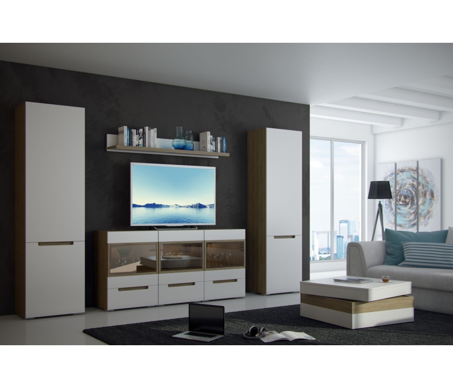 Состав:Полка Анри АН-025.02 — 1 шт;Шкаф Анри АН-224.13 — 2 шт;Тумба Анри АН-112.01 — 3 шт.Мебельный комплект «Анри» — идеальное воплощение современного интерьера. Минималистичное оформление, скрытая фурнитура, приглушенные оттенки станут прекрасным вариантом для гостиной в стиле сканди, эко и облегченный лофт. Белый матовый цвет фасадов достойно сочетается со светло-коричневой древесной текстурой корпуса.Гладкие поверхности, застекленные дверцы зрительно расширяют пространство. На настенной полке можно разместить книги, декоративные элементы. Два платяных шкафа предназначены для хранения текстиля, одежды, подойдут для размещения домашней библиотеки. Высокая ТВ-тумба снабжена выдвижными ящиками, отсеками с распашными дверцами и стеклянными вставками. Стекло, созданное по инновационной технологии StopSol, скрывает содержимое при обычном освещении и подчеркивает наполнение шкафов при включении подсветки. Качественная фурнитура, надежные механизмы упрощают эксплуатацию и продлевают срок службы комплекта.Характеристики:Корпус мебели выполнен в цвете «швейцарский вяз», фасады — в цвете «белый матовый»;Вся мебель из коллекции Анри отличается отсутствием внешних ручек, что делает ее более легкой и воздушной. Все ручки в мебели — скрытые. Это зрительно расширяет пространство и продлевает срок службы мебели;Уникальное стекло StopSol на фасадах тумб легко скроет содержимое, а при необходимости подчеркнет наполнение шкафа подсветкой (отличный вариант для коллекционеров, которые хотят ненавязчиво показать свои «сокровища»).Материалы:Для гостиной используется крепежная фурнитура и механизмы ведущих производителей. Такая фурнитура позволит мебели прослужить дольше, не требуя частого ремонта. Петли оснащены доводчиками для более плавного закрывания дверей;В выдвижных ящиках используется система скрытых направляющих. Это позволяет легко и почти бесшумно выдвигать-задвигать ящики, а также обеспечивает надежную фиксацию ящика и гарантирует длительный срок службы даже при высокой нагрузке.В зависимости от стиля, который вы хотите создать в вашем доме, можно дополнительно подобрать журнальный столик в светлых оттенках и однотонный диван в пастельных тонах — для эко или скандинавского стилей. Если же вы хотите эклектики — сочетайте гостиную с необычными аксессуарами и добавьте яркие кресла или стулья на высоких ножках. Не забудьте про подсветку, которая выигрышно подчеркнет гостиную и станет приятным неброским акцентом в интерьере.Необходимо два комплекта подсветки ПС (Т1).