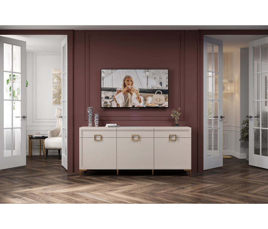 Состав:Тумба Дольче ДЛ-352.07 — 1 шт.Характеристики:Цвет: кашемир серый;Тумба с тремя выдвижными ящиками и тремя рамочными фасадами со вставкой ЛДСП 16 мм;Внутреннее наполнение: три полки ЛДСП 16 мм;В выдвижные ящики класть не более 5-7 кг, нагрузка должна быть распределена по всему дну (не класть тяжелые предметы).Материалы:Тумба сделана из ЛДСП 16 мм класса эмиссии Е1;Фасады: ЛДСП 16 мм с наклеенным профилем;Для облицовывания кромок деталей используется высококачественный материал от ключевых производителей;Задняя стенка: ДВП;Крепежная фурнитура и механизмы ведущих производителей (Titus, Hettiсh).