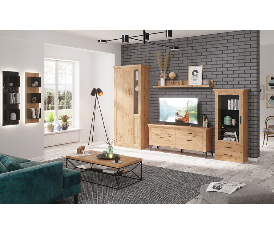 Состав:Тумба под телевизор Магнум МГ-345.05 - 1 шт.;Шкаф Магнум МГ-204.14;Шкаф Магнум МГ-261.06 - 1 шт.;Полка Магнум МГ-024.02 - 1 шт.Особенности:Гостиная в традиционном стиле. Коллекция универсальна и подойдет интерьерам в стилях лофт, скандинавский, фьюжн, эко. Мебель Магнум легко подстроится под уже имеющийся интерьер или может стать основой для нового;Гостиная будет гармонировать как с классическими оттенками белого, серого, коричневого, так и с текстурами — деревом, бетоном и кирпичом;Коллекция Магнум понравится тем, кто ищет современную мебель, которая будет долго оставаться актуальной. Такая гостиная станет отличной покупкой для молодых людей и пар, которые только обустраивают свое жилье и пока окончательно не определились со стилем. Магнум может легко трансформироваться вместе со вкусами владельца. Сегодня — лофт, завтра — минимализм, послезавтра — хай-тек.Характеристики:Корпус мебели и фасады выполнены в цвете «дуб бунратти»;Все ручки и декоративные металлические опоры в коллекции Магнум сделаны в стильном оттенке «железо античное черное»;Вы можете самостоятельно выбрать комплектацию напольного шкафа.Материалы:Для гостиной используется крепежная фурнитура и механизмы ведущих производителей;Петли оснащены доводчиками для более плавного закрывания дверей. Такая фурнитура позволит мебели прослужить дольше, не требуя частого ремонта;В выдвижных ящиках используются направляющие скрытого монтажа со встроенным доводчиком. Это позволяет легко и почти бесшумно выдвигать-задвигать ящики, а также обеспечивает надежную фиксацию ящика и гарантирует длительный срок службы даже при высокой нагрузке.В зависимости от стиля, который вы хотите создать в вашем доме, можно дополнительно приобрести минималистичные вазы для цветов и серый диван простой формы — для эко или скандинавского стилей, аксессуары из стекла и кожаное кресло — для лофта, яркий акцентный журнальный столик — для фьюжна.