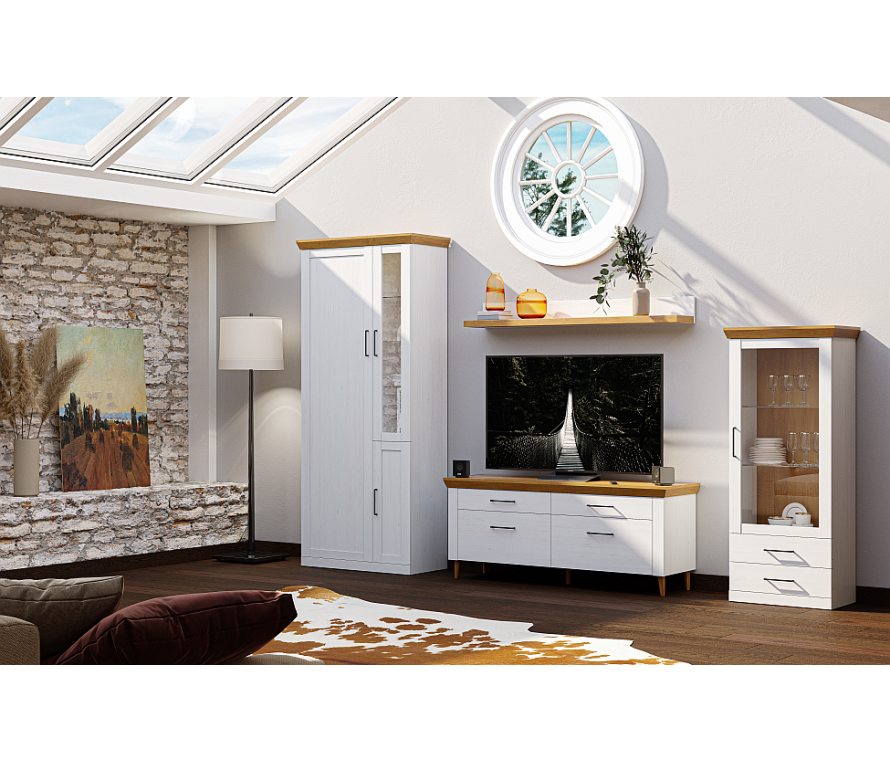 Состав:Шкаф Магнум МГ-204.14 — 1 шт.Шкаф Магнум МГ-261.06 — 1 шт.Тумба Магнум МГ-345.05, Д3 — 1 шт.Полка Магнум МГ-024.02 — 1 шт.Гостиная в традиционном стиле. Коллекция универсальна и подойдет интерьерам в стилях лофт, скандинавский, фьюжн, эко. Мебель Магнум легко подстроится под уже имеющийся интерьер или может стать основой для нового.Характеристики:Цвет корпуса и фасадов: блан шене;Цвет декора (карнизы, ножки и столешница тумбы): дуб бунратти;Все ручки в коллекции Магнум сделаны в стильном оттенке «железо античное черное».Материалы:Корпус: ЛДСтП;Фасады: рамочной конструкции из профиля МДФ, окутанного бумагой с «финиш-эффектом», со вставкой ЛДСП 0,8 см или прозрачного стекла 0,4 см;Для гостиной используется крепежная фурнитура и механизмы ведущих производителей;Петли со встроенным демпфером позволяют плавно закрывать двери. Такая фурнитура позволит мебели прослужить дольше, не требуя частого ремонта;Двери в нижних отделениях тумбы открываются вниз и удерживаются механизмом;В выдвижных ящиках используются направляющие скрытого монтажа со встроенным доводчиком. Это позволяет легко и почти бесшумно выдвигать-задвигать ящики, а также обеспечивает надежную фиксацию ящика и гарантирует длительный срок службы даже при высокой нагрузке.