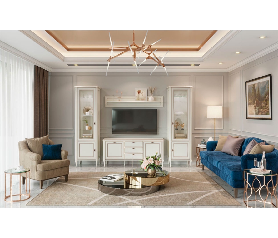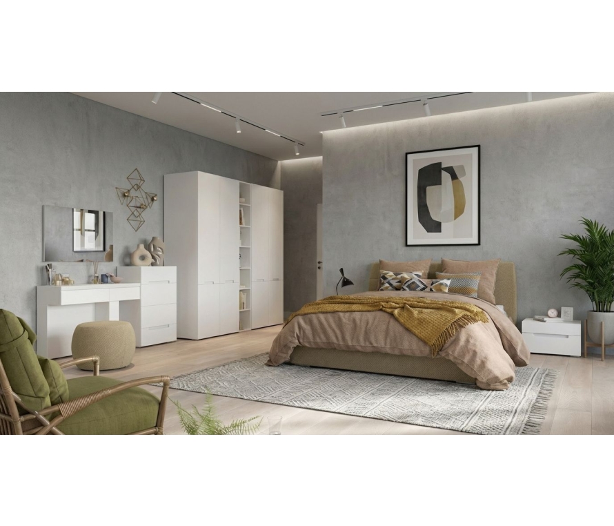 Состав:Шкаф Онтарио ОН-225.23 — 2 шт;Комод Онтарио ОН-105.01 — 1 шт;Полка навесная Онтарио ОН-024.03 — 1 шт.Характеристики:Цвет: серо-белый;Шкаф с рамочным фасадом и одним выдвижным ящиком, за дверью 3 стеклополки;Комод с тремя секциями, крайние секции комода — отделения с одной съемной щитовой полкой за распашными фасадами;Средняя секция — выдвижные ящики;В выдвижные ящики можно класть не более 5-7 кг в каждый, при этом нагрузка должна быть равномерно распределена по всему дну (не класть тяжелые предметы, которые могут повредить и выдавить дно);Рекомендована нагрузка на навесную полку — 1-2 кг;Отдельно стоящие модули необходимо крепить к стене во избежание опрокидывания.Материалы:Корпус: ЛДСП;Фасады шкафа рамочные, нижняя дверь — вставка МДФ 6 мм, верхняя дверь — вставка стекло 4 мм с матировкой;Фасады ящиков рамочные;Опоры изготовлены из массива бука (крашеные с эффектом протирания);Для облицовывания кромок деталей используется высококачественный материал;Для выдвижных ящиков используется система скрытых направляющих со встроенным доводчиком;Крепежная фурнитура и механизмы ведущих производителей.