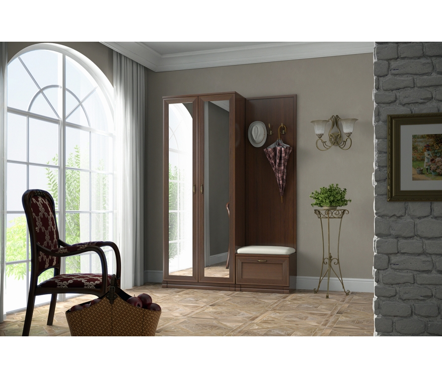 Состав:Шкаф Адажио АГ-204.02 — 1 шт;Панель с крючками Адажио АГ-021.05 — 1 шт;Тумба Адажио АГ-305.08 — 1 шт;Комплект цоколей Адажио АГ-012.01 — 1 шт;Мягкий элемент Адажио АГ-912.01 — 1 шт.Особенности:Адажио — образец сдержанности и изящества, стиля и элегантности. Такая мебель подойдет не только к классическим интерьерам, но и к прихожим в стилях фьюжн, контемпорари и эклектика;Прихожая будет гармонировать с пастельными, кремовыми оттенками, оттенками теплого серого. Если же вы хотите добавить акцентов в декоре — используйте глубокие тона синего, зеленого, терракотового;Коллекция Адажио понравится семейным людям, ценителям классики и традиций.Характеристики:Мебель выполнена в цвете «клен старый»;Лицевая фурнитура сделана в стильном оттенке «старинная латунь»;Для отдельно стоящего шкафа необходимо крепление к стене;Опоры — регулируемые;Вместительный шкаф и вешалки позволят разместить верхнюю одежду, а тумбочка сохранит в чистоте обувь и аксессуары.Материалы:Корпуса: ламинированная плита ДСП класса эмиссии Е1;Фасады шкафа: ЛДСП, зеркало заключено в раму из профиля МДФ;Фасад тумбы: ЛДСП с наклеенным профилем из МДФ;Декоративная панель: каркас ЛДСП с профилем МДФ;Отделка фасадов выполнена испанским шелковисто-матовым лаком и патиной (эффект состаренного дерева);Опоры — металлические, скрыты декоративным цоколем из профиля МДФ;Лицевая фурнитура: латунь;Петли шкафа оснащены накладными демпферами-доводчиками для «мягкого» закрывания дверей;Фасад тумбы откидывается вниз с помощью кронштейна.