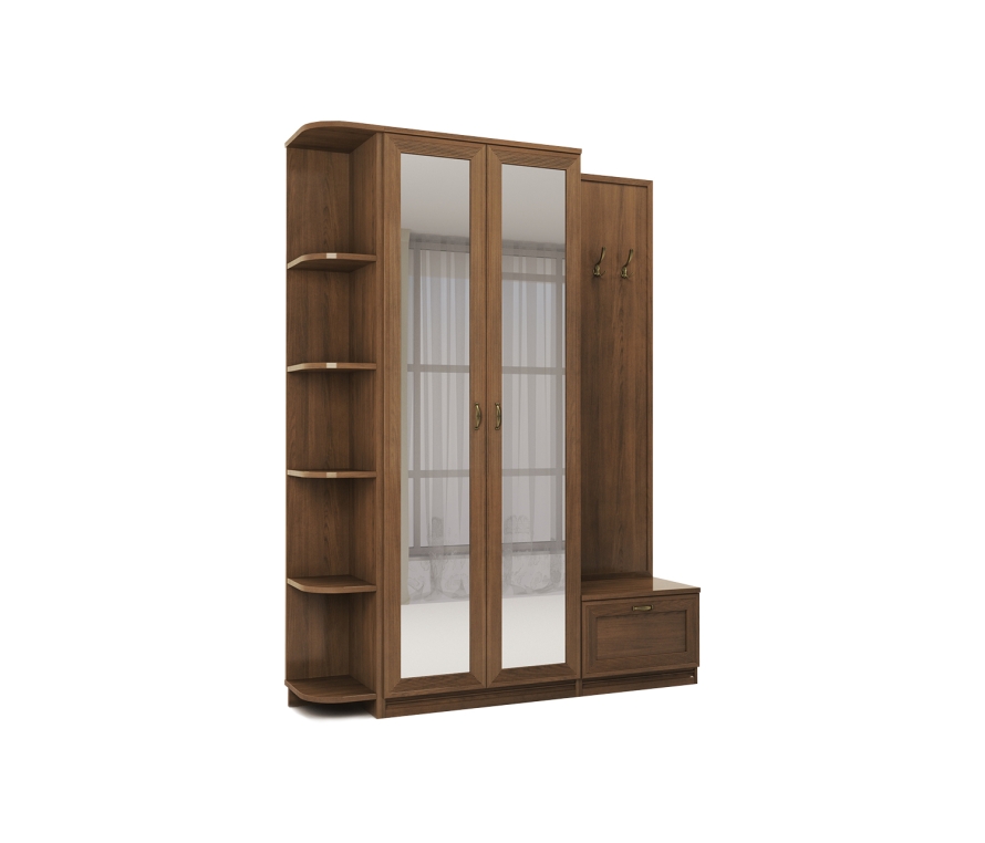 Состав:Тумба Адажио АГ-305.08 — 1 шт;Панель с крючками Адажио АГ-021.05 — 1 шт;Комплект цоколей Адажио АГ-012.01 — 1 шт;Шкаф Адажио АГ-204.02 — 1 шт;Стеллаж Адажио АГ-702.01 — 1 шт.Особенности:Адажио — образец сдержанности и изящества, стиля и элегантности. Такая мебель подойдет не только к классическим интерьерам, но и к прихожим в стилях фьюжн, контемпорари и эклектика;Прихожая будет гармонировать с пастельными, кремовыми оттенками, оттенками теплого серого. Если же вы хотите добавить акцентов в декоре — используйте глубокие тона синего, зеленого, терракотового;Коллекция Адажио понравится семейным людям, ценителям классики и традиций.Характеристики:Мебель выполнена в цвете «клен старый»;Лицевая фурнитура сделана в стильном оттенке «старинная латунь»;Для отдельно стоящего шкафа необходимо крепление к стене;Регулируемые опоры;Вместительный шкаф и вешалки позволят разместить верхнюю одежду, тумбочка сохранит в чистоте обувь, а аксессуары на стеллаже подчеркнут выбранный вами стиль интерьера.Материалы:Корпуса: ламинированная плита ДСП класса эмиссии Е1;Фасады шкафа: ЛДСП, зеркало заключено в раму из профиля МДФ;Фасад тумбы: ЛДСП с наклеенным профилем из МДФ;Декоративная панель: каркас ЛДСП с профилем МДФ;Отделка фасадов выполнена испанским шелковисто-матовым лаком и патиной (эффект состаренного дерева);Опоры — металлические, скрыты декоративным цоколем из профиля МДФ;Лицевая фурнитура: латунь;Петли шкафа оснащены накладными демпферами-доводчиками для «мягкого» закрывания дверей;Фасад тумбы откидывается вниз с помощью кронштейна.
