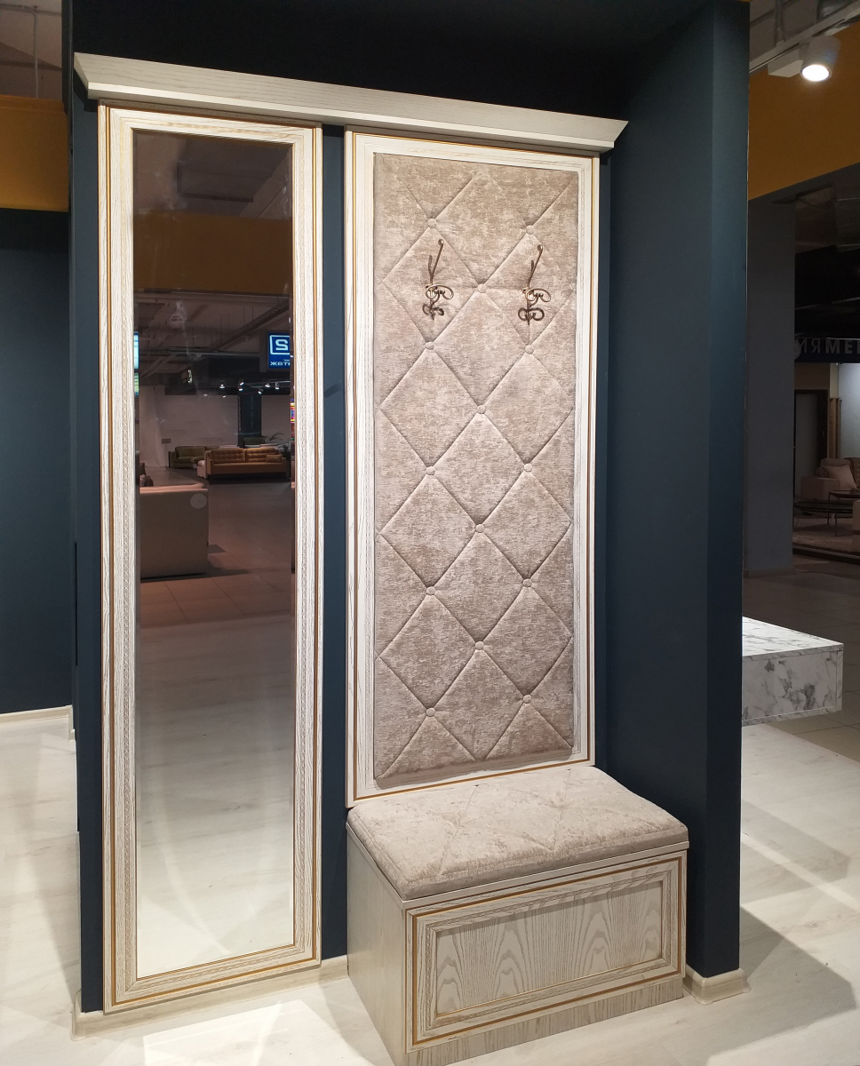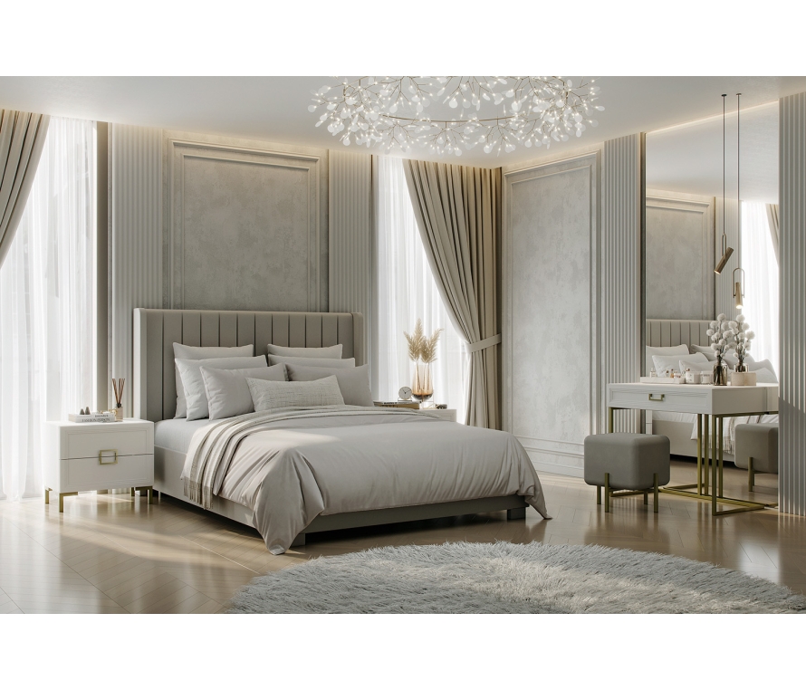 Состав:Кровать Аделия 810.26 (М) — 1 шт;Стол туалетный Дольче ДЛ-500.11 — 1 шт;Тумба прикроватная Дольче ДЛ-305.03 — 2 шт;Банкетка Дольче ДЛ-910.11 — 1 шт.Особенности:Спальня Дольче выполнена в стиле эклектики, а также соединяет в себе стиль ар-деко в современном прочтении и минимализм. К строгим формам и безупречной геометрии добавлена гладкая текстура, позволяющая смягчить декор и подарить коллекции шлейф тонкой роскоши с золотыми вставками;Общая концепция коллекции — рациональность и долговечность;Основу дизайна составляет геометрический символ — квадрат. Это видно по золотым матовым ручкам на тумбе и столе;Напольная тумба выполнена с матовым тактильным эффектом в цвете «белый премиум»;Декоративная акцентная рама в изголовье кровати повторяет форму ручек.Характеристики:Обивка: ткань микровелюр Simple 29;Цвет мебели: белый премиум;Цвет ручек и опор: золото;Опоры — регулируемые, высотой 12 см;Для тумбы необходимо крепление к стене;Туалетный стол оснащен выдвижным ящиком.Материалы:Корпуса: ЛДСП толщиной 1,6 см класса эмиссии Е1;Фасады: ЛДСП толщиной 1,6 см с наклеенным профилем;Дно ящиков: ДВП;Каркас банкетки: ДСП, ДВП, сосновая доска;Мягкий каркас банкетки: пенополиуретан (ППУ, поролон), синтепон и спанбонд;Для облицовывания кромок деталей используется высококачественный кромочный материал производства Германии, Австрии;Для спальни используется крепежная фурнитура ведущих производителей Titus и Hettiсh;Для выдвижных ящиков используется система скрытых направляющих Quadro (Германия, Hettiсh) с функцией «Silent Sestem» (встроенный доводчик). Это позволяет легко и почти бесшумно выдвигать-задвигать ящики, а также обеспечивает надежную фиксацию ящика и гарантирует длительный срок службы даже при высокой нагрузке.