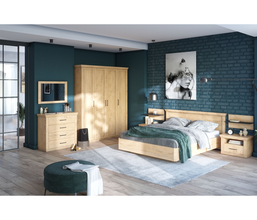 Состав:Кровать Магнум МГ-800.26 — 1 шт;Шкаф для одежды Магнум МГ-183.01 — 1 шт;Тумба прикроватная Магнум МГ-305.02 — 2 шт.Особенности:Спальня в традиционном стиле. Такая мебель универсальна и подойдет интерьерам в стилях лофт, скандинавский, фьюжн, эко. Мебель из коллекции Магнум легко подстроится под уже имеющийся интерьер или может стать основой для нового;Спальня будет гармонировать как с классическими оттенками белого, серого, коричневого, так и с текстурами — деревом, бетоном и кирпичом;Коллекция Магнум понравится тем, кто ищет мебель, актуальную «на века». Такая спальня станет отличной покупкой для молодых людей и пар, которые только обустраивают свое жилье и пока окончательно не определились со стилем. Магнум может легко трансформироваться вместе со вкусами владельца: сегодня — лофт, завтра — минимализм, послезавтра — эко.Характеристики:Корпус мебели и фасады выполнены в цвете «дуб бунратти»;Цвет задних стенок и дна ящиков: «черный графит»;Все ручки в коллекции Магнум сделаны в стильном оттенке «железо античное черное»;Основание кровати — ортопедическое. Матрас приобретается отдельно.Материалы:Для спальни используется крепежная фурнитура и механизмы ведущих производителей;Петли оснащены демпфером для плавного закрывания дверей. Такая фурнитура позволит мебели прослужить дольше, не требуя частого ремонта;В выдвижных ящиках используется система скрытых направляющих со встроенным демпфером. Это позволяет легко и почти бесшумно выдвигать-задвигать ящики, а также обеспечивает надежную фиксацию ящика и гарантирует длительный срок службы даже при высокой нагрузке.В зависимости от стиля, который вы хотите создать в вашем доме, можно дополнительно приобрести минималистичные вазы для цветов — для эко или скандинавского стилей, аксессуары из стекла и журнальный столик на металлических ножках — для лофта, яркое акцентное кресло или пуф — для фьюжна.