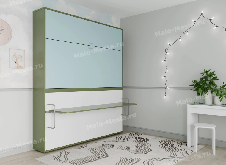 Двухэтажная складная кровать для школьника Duos со столом – это комплект мебели для двоих детей. Эта двуспальная двухъярусная кровать со столом идеально подходит для экономии пространства и организации удобного рабочего места. База трансформируемой кровати – стальные рамы оснований для ортопедических матрасов и стальные элементы конструкций механизма трансформации. Рабочий стол школьника является не просто местом для учебы, но и опорой для нижнего яруса кровати Duos II. Это особенно важно, если вы выбираете двухъярусную кровать с рабочим местом. Стол остается в горизонтальном положении даже в процессе раскладывания кровати, тем самым сохраняя в нетронутом виде все вещи, оставшиеся на нем после дневных активностей детей. Открытие нижней кровати осуществляется за столешницу – нужно повернуть замок, потянуть стол на себя, и кровать начнет раскладываться. Именно поэтому в базовой комплектации нижняя кровать оснащается замком для фиксации, чтобы ребенок случайно не разложил откидную кровать, потянув за стол. Параметры верхнего яруса двухэтажной кровати Верхний ярус открывается за ручку на фасаде и фиксируется металлической лестницей для безопасности, с помощью которой можно попасть на второй уровень Duos II. Эта двухэтажная кровать со столом отлично подойдет для мальчиков и девочек. Для верхней кровати в базе устанавливаются металлические складные бортики по периметру кровати для безопасности ребенка. У нижней кровати предусмотрено только металлическое складное изголовье. Другие бортики безопасности нижнего уровня кровати-трансформера Duos со столом можно заказать дополнительно. Шкаф двухуровневой подъемной кровати Duos II имеет заднюю стенку и антресоль с закрытыми полками, которая открывается за ручку на фасаде. Такая детская двухъярусная кровать со шкафом и столом позволяет организовать удобное хранение вещей и игрушек, экономя пространство. Выбирая двухэтажную кровать с рабочим столом, обратите внимание на модель Duos II, которая сочетает в себе стиль, функциональность и безопасность. Это лучшее решение для небольших помещений и максимального удобства детей.