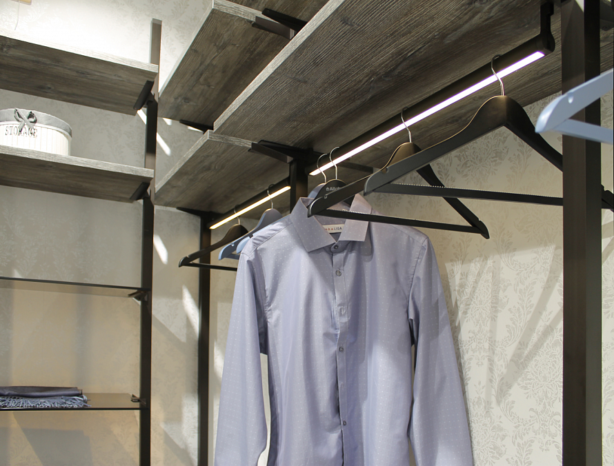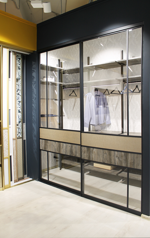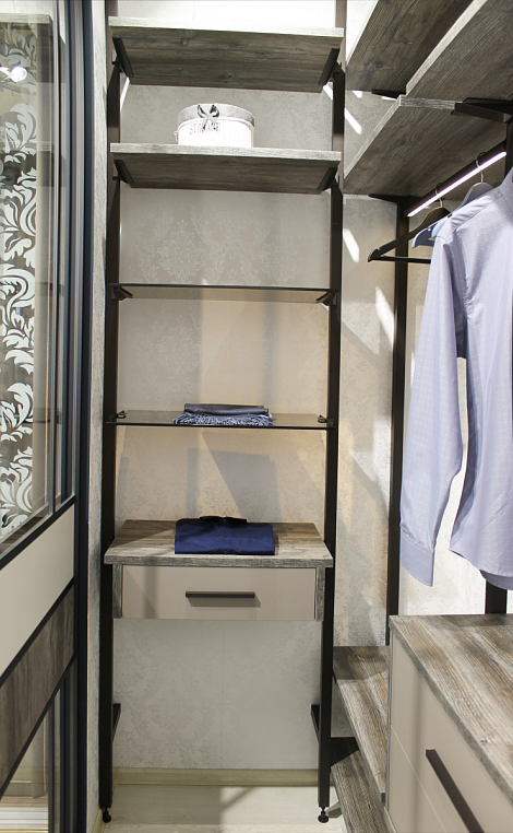 Гардеробная комната с использованием интерьерной системы #uno (Германия) - надежность и функциональность. Уникальной особенностью немецкой системы UNO является возможность трансформироваться при необходимости. Части гардеробной можно менять местами и заказывать отдельные элементы. Профиль - интерьерная система UNO Raumplus в цвете Темная бронза. Корпус - ЛДСП Egger Ящики: фасады - МДФ Alvic, направляющие - Tandem Plus Blumotion Наполнение - стекло бронза, штанга с подсветкой Cornice, вешало для галстуков и ремней *Указана стоимость образца в минимальной комплектации без учета стоимсоти услуг. Двери-купе встоимость не входят.