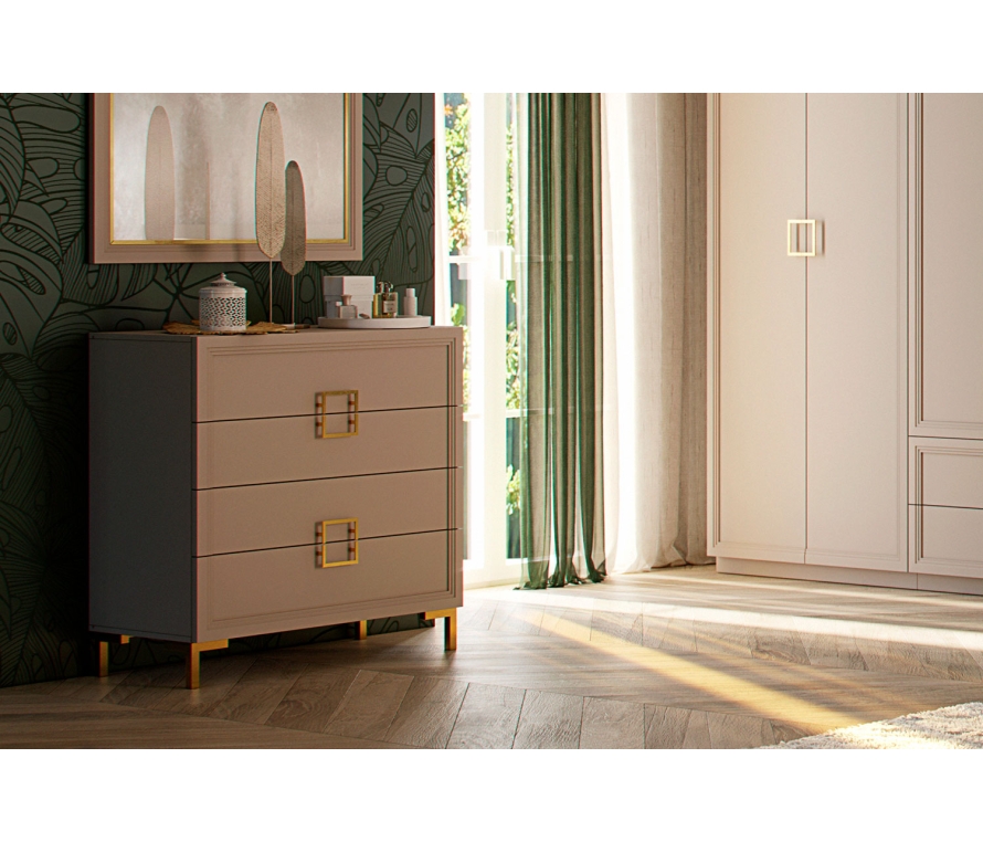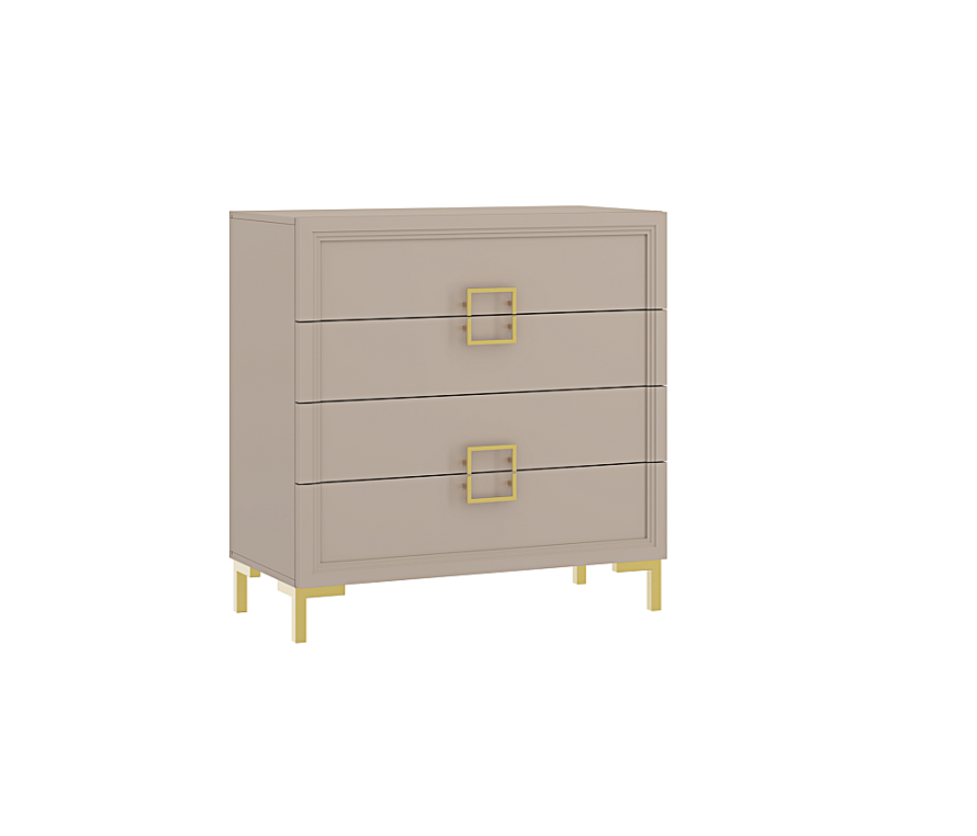 Элегантный лаконичный комод с четкими прямыми линиями будет превосходно смотреться в спальне, гостиной, прихожей, оформленной в стиле ар-деко или минимализм. Четыре выдвижных ящика визуально объединены рисунком квадратных ручек. Изящный сложный оттенок «серый кашемир», фурнитура и опоры «под золото» только усиливают эффектность мебели.Изделие имеет возможность крепления к стене для повышения устойчивости конструкции и экономии места в помещении. При изготовлении используется крепеж и комплектующие от ведущих европейских производителей, что гарантирует долговечность службы комода. Скрытые направляющие с демпфером обеспечивают идеальную амортизацию, практически бесшумную эксплуатацию, надежную фиксацию и плавное движение ящиков.Характеристики:Комод с четырьмя выдвижными ящиками;Цвет: кашемир серый;Лицевая фурнитура (ручки и опоры) цвета «золото»;Комод нужно крепить к стене во избежание опрокидывания;Изделие необходимо использовать по назначению, не допускать установки тяжелых предметов на верхнюю крышку. Максимально возможная распределенная нагрузка на верхнюю крышку — не более 8 кг;В выдвижной ящик можно класть не более 5-7 кг, при этом нагрузка должна быть распределена по всему дну (не класть тяжелые предметы, которые могут повредить и выдавить дно).Материалы:Корпус выполнен из ЛДСП толщиной 16 мм класса эмиссии Е1;Фасады из ЛДСП 16 мм с наклеенным профилем;Для облицовывания кромок деталей используется высококачественный материал производства Германии, Австрии;Донья ящиков изготовлены из ДВП;Крепежная фурнитура и механизмы ведущих производителей (Titus, Hettiсh);Для выдвижных ящиков используется система скрытых направляющих Quadro со встроенным демпфером (Германия, Hettich). Система Quadro обеспечивает более высокие потребительские свойства: позволяет легко и практически бесшумно выдвигать-задвигать ящики, обеспечивает надежную фиксацию ящика благодаря функции блокировки снятия, гарантирует высокий срок службы с высокой нагрузкой;Петли Sensis Hettich.Размеры:Ширина: 90,1 см;Высота: 91,6 см;Глубина: 45,1 см.