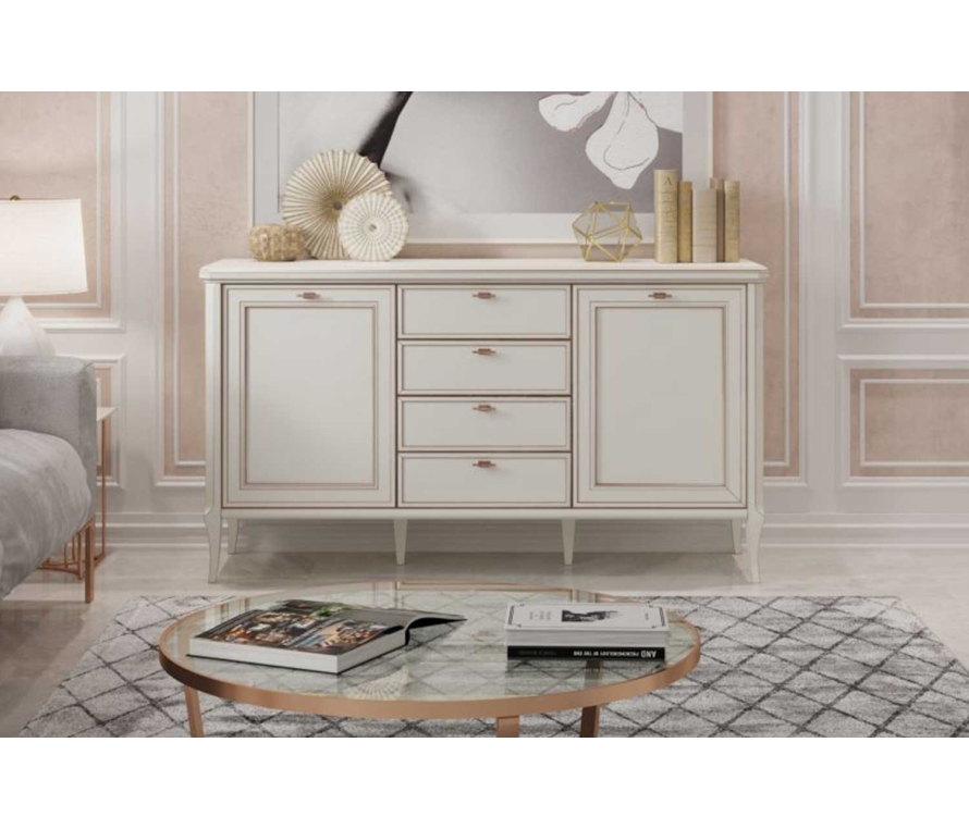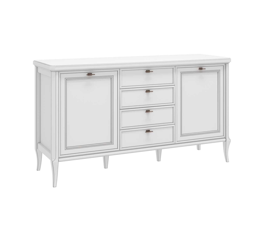 Характеристики:Комод с тремя секциями;Цвет: серо-белый;Крайние секции комода — отделения с одной съемной щитовой полкой за распашными фасадами;Средняя секция — выдвижные ящики;В выдвижные ящики можно класть не более 5-7 кг в каждый, при этом нагрузка должна быть равномерно распределена по всему дну (не класть тяжелые предметы, которые могут повредить и выдавить дно);Отдельно стоящий комод необходимо крепить к стене во избежание опрокидывания.Материалы:Корпус: ЛДСП;Фасады ящиков рамочные;Опоры изготовлены из массива бука (крашеные с эффектом протирания);Для облицовывания кромок деталей используется высококачественный материал производства Германии, Австрии;Для выдвижных ящиков используется система скрытых направляющих Quadro со встроенным доводчиком (Германия, Hettich);Крепежная фурнитура и механизмы ведущих производителей (Titus, Hettiсh).
