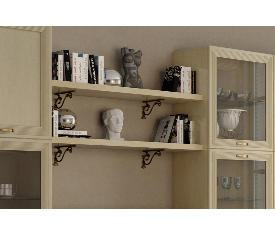Характеристики:Настенная полка на декоративных менсолодержателях;Цвет: валенсия;Полку можно навешивать как между модулями, так и отдельно на стену;Необходимо соблюдать рекомендации по нагрузке на полку — не более 6-8 кг распределенной нагрузки;Важно! Чтобы избежать прогиба полки, предметы желательно ставить над менсолодержателями;При навеске на стену нужно соблюдать осторожность — изделие не комплектуется дюбелями, необходимо самостоятельно приобретать дюбели, подходящие для конкретного типа стены.