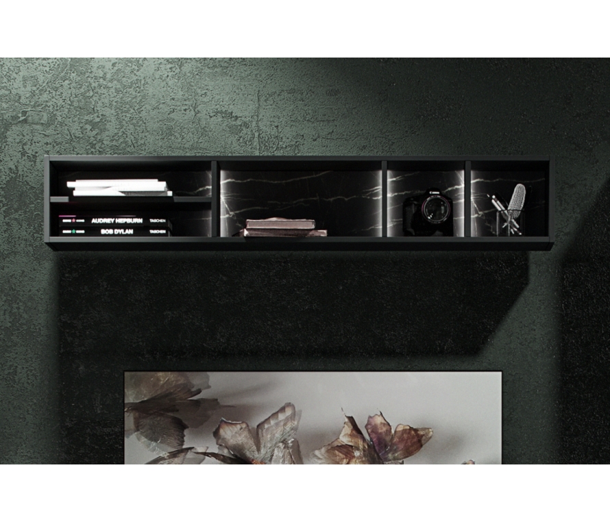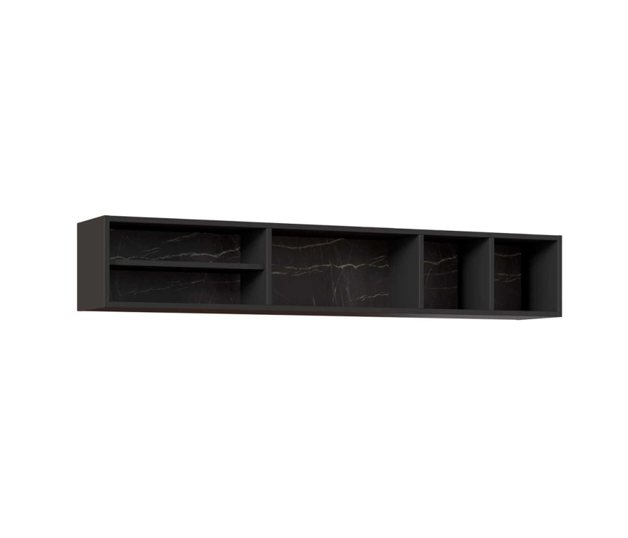 Характеристики:Цвет: камень пьетра, черный графит;Полка навесная, может быть в лево или правостороннем исполнении;Дополнительно может комплектоваться светодиодной подсветкой МИ-961.03;Рекомендована нагрузка на полку — не более 10 кг.Материалы и фурнитура:Корпус: ЛДСП толщиной 16 мм класса эмиссии Е1;Кромочный материал: ПВХ толщиной 0,4 и 2 мм на видимых торцах щитовых деталей, меламиновый — на невидимых;Крепежная фурнитура и механизмы: Titus, Hettiсh.