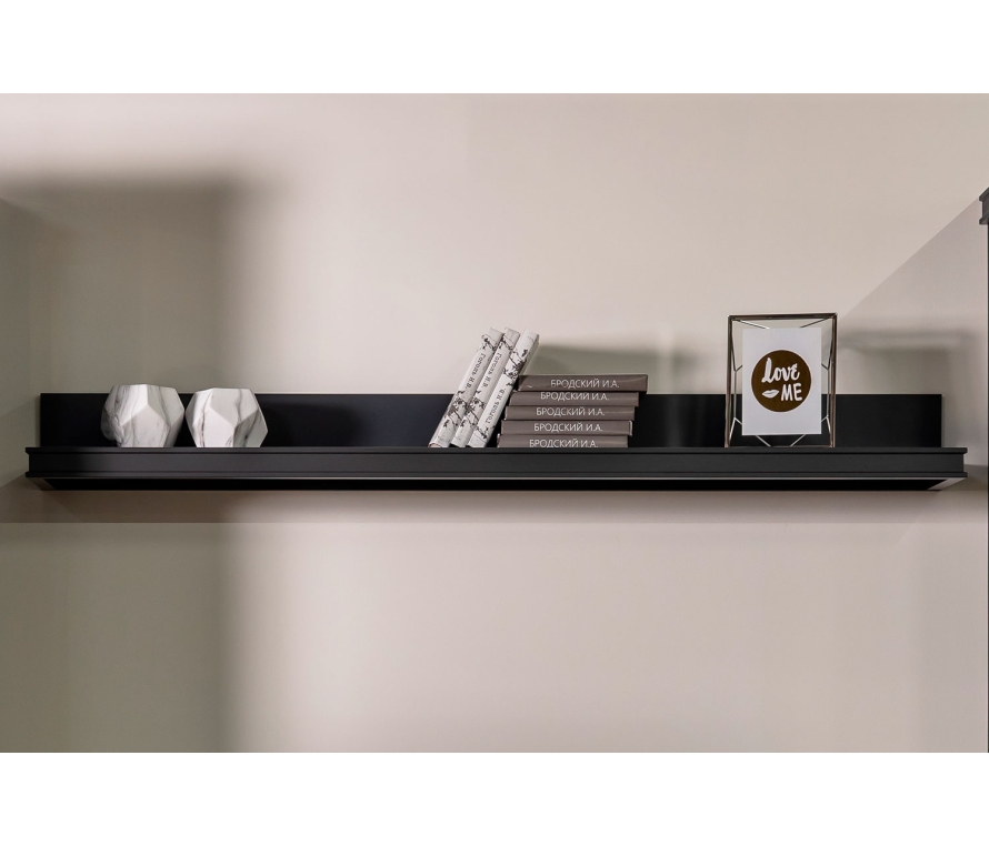 Полка настенная с профилем МДФ по 3-м сторонам полки;Цвет: Серый уголь;Максимальная распределенная нагрузка на полку 4-7кг.