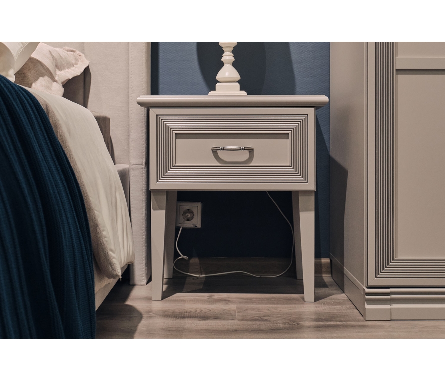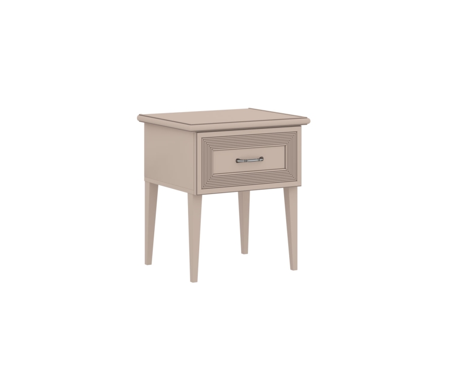 Характеристики:Тумба с одним выдвижным ящиком;Цвет: кашемир серый;На крышке по видимой части выполнен декоративный профиль;Не допускать установки тяжелых предметов на верхнюю крышку;Максимальная нагрузка на верхнюю крышку — не более 8 кг;Максимальная нагрузка на выдвижной ящик — не более 5-7 кг (не класть тяжелые предметы, которые могут повредить и выдавить дно).Материалы:Корпус: ЛДСП;Каркас ящика выполнен из ящичного профиля;Рамочный фасад с гребенчатым профилем из МДФ;Отделка фасадов сделана испанским акриловым лаком и патиной (эффект состаренного дерева);Крепежная фурнитура и механизмы: Titus, Hettich;В выдвижном ящике используется система скрытых направляющих Quadro (Hettich, Германия) с функцией «Silent System» (встроенный доводчик).