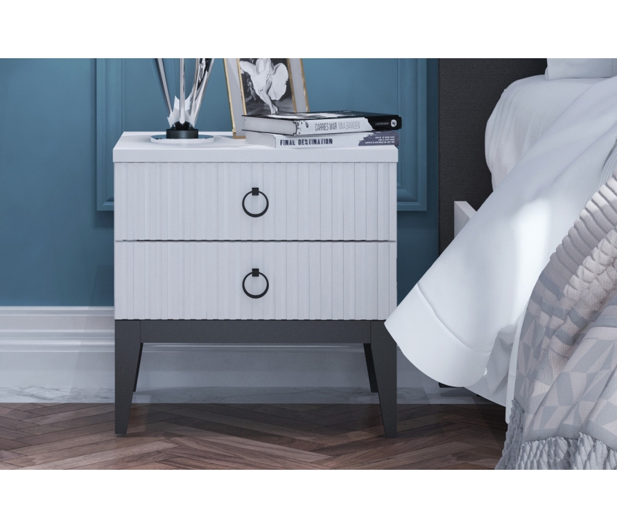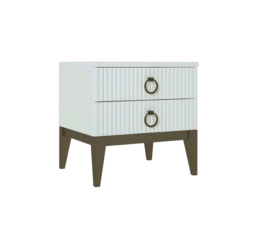 Характеристики:Цвет: белый премиум;Цвет ручек: чёрный матовый;Тумбу можно заказать в цвете «кашемир серый».Материалы:Каркас: ЛДСП 1,6 см, крышка 2,2 см;Фасады ящиков: МДФ с декоративной фрезеровкой в виде вертикальных полос и окутаны плёнкой ПВХ;Ручки: металл, тип «серьга»;Тумба установлена на нерегулируемых по высоте буковых опорах, отделка — серая матовая эмаль;Ящики на выдвижных механизмах скрытого монтажа;Установлены доводчики.
