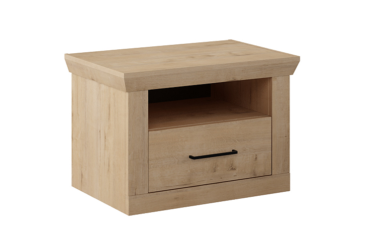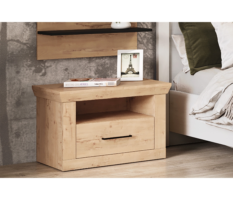 Характеристики:Тумба прикроватная с ящиком;Цвет корпуса: дуб бунратти;Цвет дна ящика: черный графит;Цвет декоративной ручки: железо античное черное;В выдвижных ящиках используются направляющие скрытого монтажа со встроенным доводчиком;Максимальная нагрузка в ящик — не более 6 кг;Тумбу необходимо крепить к стене во избежание опрокидывания!Материалы:Для изготовления мебели используется ламинированная плита ДСП толщиной 16 и 22 мм класса эмиссии Е1;Фасад ящика: ЛДСП 22 мм;Для облицовывания кромок деталей используется высококачественный материал от ключевых производителей;Декоративная ручка: металл;Крепежная фурнитура и механизмы ведущих производителей.
