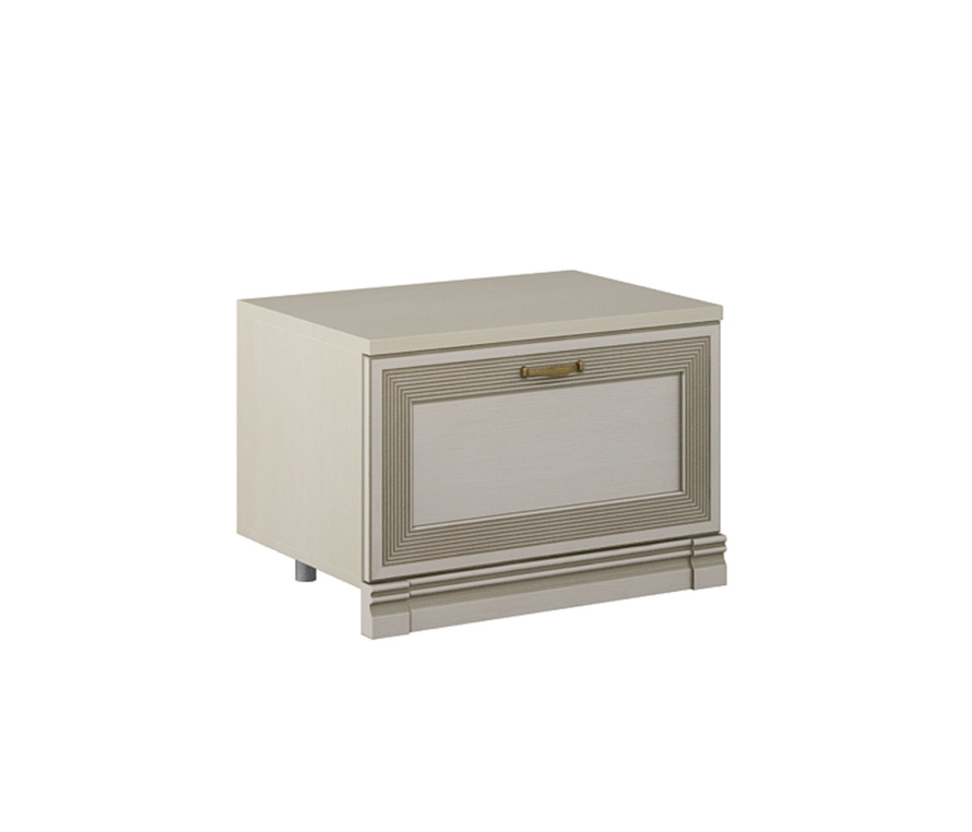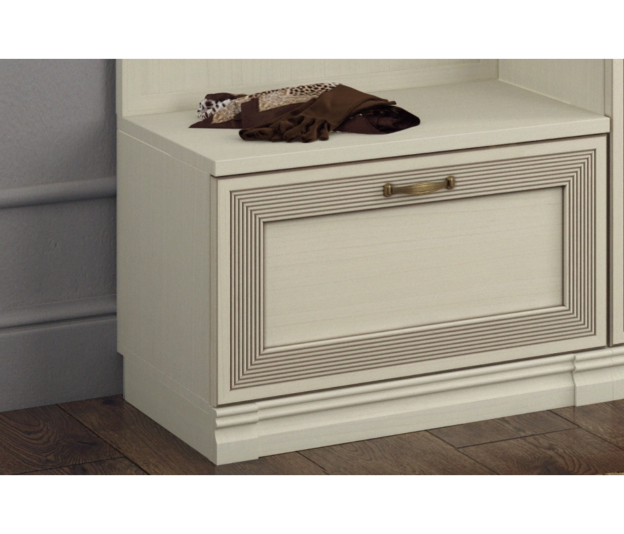 Характеристики:Тумба с откидной дверью для обуви;Фасад откидывается вниз с помощью кронштейна;Цвет: валенсия;Цвет внешней фурнитуры: античная бронза;Высота опор — 64 мм, регулируются на 12 мм;Для отдельно стоящей тумбы необходимо дополнительно покупать комплект боковых цоколей АГ-012.01 (1 шт);Можно комплектовать мягким сиденьем АГ-912.01.Материалы:Каркас: ЛДСП 16 и 22 мм;Фасад: ЛДСП 16 мм с наклеенным профилем из МДФ;Профиль покрыт лаком и патиной;Внешняя фурнитура: латунь;Крепежная фурнитура и механизмы: Titus, Hettich.