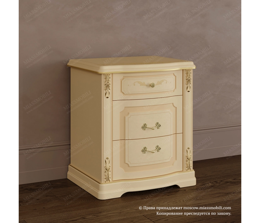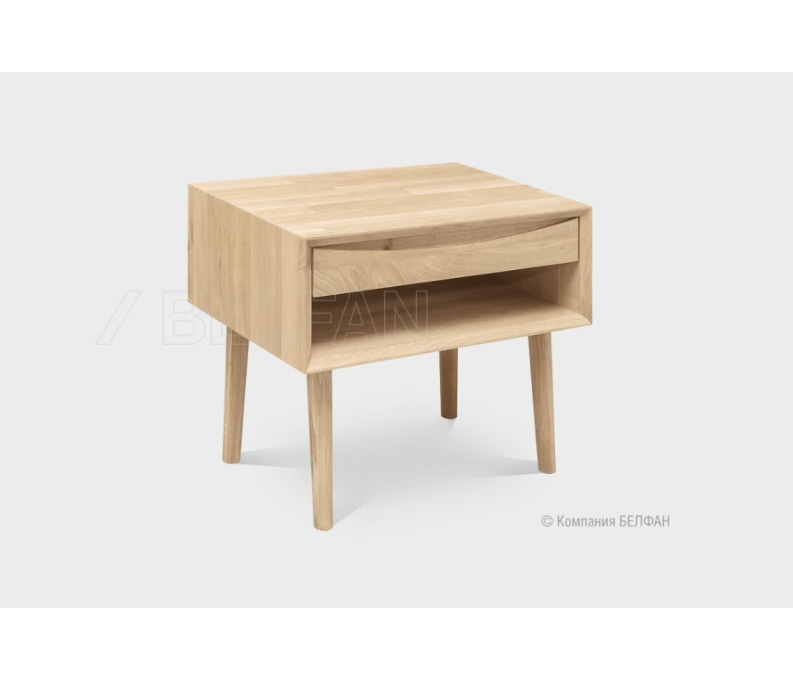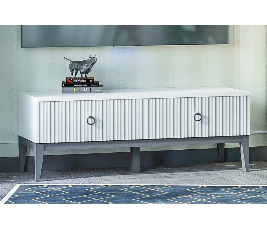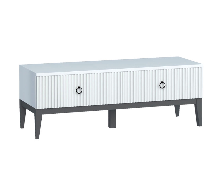 Характеристики:Цвет: белый премиум;Цвет ручек: чёрный матовый;Наполнение тумбы: 2 ящика.Материалы:Каркас: ЛДСП 1,6 см;Крышка: ЛДСП 2,2 см;Фасады: МДФ с фрезеровкой и окутаны плёнкой ПВХ;Ручки: металл;Опоры: деревянные с эмалевой отделкой серого цвета;Выдвижной механизм ящиков производства «Слорос» неполного выдвижения с доводчиком.