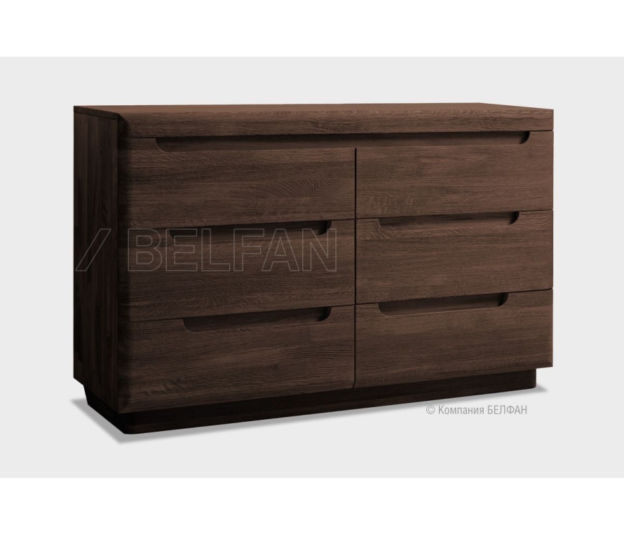 Коллекция «Bremen» («Бремен») — это интерьерный минимализм, вдохновлённый природой. Каждое изделие в ней подчеркивает богатую фактуру натурального дуба, а глубокое браширование делает поверхность особенно живой и выразительной. Здесь нет лишнего — только натуральное дерево, продуманный дизайн и ощущение основательности, которое хочется забрать с собой домой. Комод «Bremen» 6 — универсальный герой хранения для тех, кто ценит порядок, эстетику и практичность. Благодаря своей внушительной ширине и шести выдвижным ящикам, он легко справляется с хранением белья, одежды, текстиля и других мелочей — при этом не перегружает интерьер визуально. Модель смотрится монолитно и благородно за счёт цельных фасадов с утопленными ручками и мягкой геометрией. Функциональные особенности: ? 6 выдвижных ящиков — эргономичная система хранения. ? Глубина 450 мм позволяет разместить всё необходимое и даже больше. ? Ширина 1400 мм — идеально для просторных комнат, но визуально изделие не выглядит массивным благодаря воздушному силуэту. Экологичность и материалы: ? Комод изготовлен полностью из массива дуба — прочного, долговечного и благородного материала. ? Покрытие — итальянское паркетное масло Borma, сохраняющее текстуру дерева, защищающее и подчёркивающее его природную красоту. ? Доступные варианты отделки: дуб натуральный и дуб тёмный. В интерьере Этот комод органично вписывается в современную спальню. Его стиль универсален, но не безликий — выразительная древесина с характером делает каждый экземпляр уникальным. Особенно эффектно выглядит в ансамбле с кроватью, шкафом и прикроватными тумбами из той же коллекции. Рекомендации по сочетанию: ? Завершите интерьер с кроватью и тумбами Bremen для гармоничного пространства. ? Подходит к коллекции Норд, если хочется добавить тепла в интерьер с белыми или графитовыми акцентами. ? Идеален в тандеме с зеркалом в деревянной раме или минималистичным настенным декором. Рекомендации от BELFAN Комод поставляется в собранном виде. Для удобства транспортировки рекомендуется проверить ширину дверных проемов. Установка не требует специальных навыков. Достаточно поставить комод на ровную поверхность — и он сразу готов к использованию.