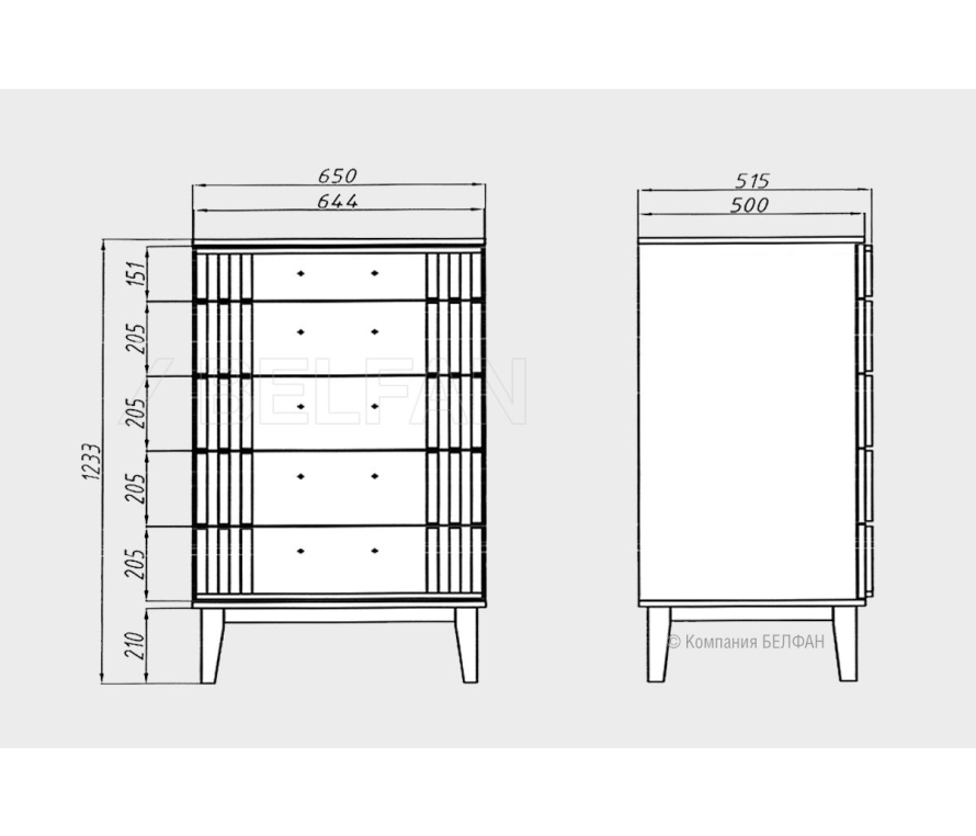 Высокий комод Chicago (Чикаго), 5 ящиков. Утонченная сдержанность лаконичных форм и эффектные реечные фасады. Схема комода: