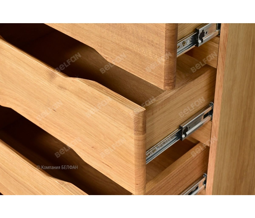Особенности комода Elva (Эльва) B-5 высокого: ? Комод изготовлен из массива и шпона дуба. ? Комод послужит отличным дополнением к шкафу, благодаря пяти глубоким и вместительным ящикам для постельного белья или одежды. ? Направляющие с доводчиками (Европейского пр-ва) обеспечат плотное и бесшумное закрывание ящиков. ? Изделие покрыто бейц-маслом – экологичным составом из натуральных компонентов. ? Мебель рекомендуется крепить к стене с помощью прилагаемого крепежа безопасности. Это предотвратит опрокидывание мебели. Для разных стен требуются различные крепежные приспособления (шурупы, дюбели, саморезы). ? Высота ножек - 18 см. Мебель из массива дерева необыкновенно красива, добротна и славится своим долголетием. Однако, чтобы продлить этот срок, сохранить мебельным изделиям первоначальную элегантность и отличный внешний вид, за ней необходим надлежащий уход. Если у вас появились царапины, следы от кружки или мокрой тряпки, то сервис-бокс от компании BELFAN поможет вам вернуть мебели первозданный вид даже в домашних условиях. Данный сервис-бокс подходит только для мебели в крашении бейц-масло. Скачать схему сборки комода: