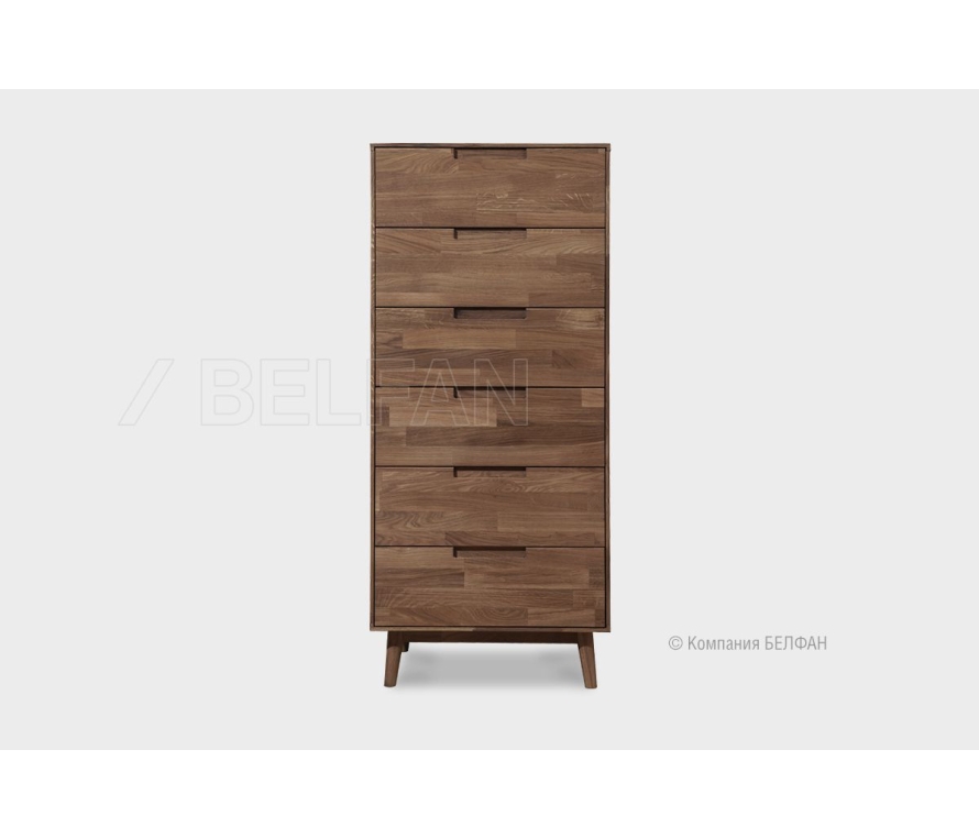 Коллекция «Ирвинг» вдохновлена эстетикой Mid-century modern, где лаконичность форм и функциональность объединены с изысканным вкусом. Отличительная особенность — высокие тонкие ножки, тонкие корпуса и простота линий, создающая легкость даже в компактных помещениях. Такая мебель не утяжеляет интерьер, а наоборот — придаёт ему архитектурную ритмику, позволяя пространству «дышать». Комод «Ирвинг» 6 (высокий) — это воплощение вертикальной элегантности в стиле Mid-century modern, где тонкие скошенные ножки, прямые линии корпуса и отсутствие лишнего декора создают утончённую геометрию. Функциональные особенности ? Высота — 1395 мм, при компактной ширине 600 мм, идеально подходит даже для небольших помещений. ? Эргономичная глубина 450 мм позволяет разместить комод в узких зонах — например, в проходе, возле окна или на входе в гардеробную. ? Шесть выдвижных ящиков обеспечивают вместительное хранение вещей, от белья и одежды до документов или аксессуаров. ? Три варианта крашения: «бейц-масло», «беленый дуб» и «графит» Экологичность и материалы ? Комод изготовлен из массива дуба. ? В качестве покрытия используется бейц-масло на натуральной основе, оно подчёркивает природный рисунок древесины и сохраняет её тактильную теплоту. В интерьере Высокий комод «Ирвинг» идеально подойдёт для: — спальни — как вертикальное хранилище белья и одежды. — холла или коридора — как акцентный и полезный элемент. — кабинета или гостиной — как лаконичный органайзер. Особенно красиво он смотрится рядом с другими изделиями коллекции «Ирвинг»: кроватью и прикроватными тумбами. Благодаря универсальному дизайну и природной эстетике дуба, изделие легко вписывается как в скандинавский, так и в экостиль. Рекомендации по сочетанию ? В отделке «бейц-масло»— идеально с тёплыми стенами, светлым текстилем и зелёными растениями. ? В «графите» — акцентно смотрится в минималистичных интерьерах с серыми или бетонными стенами. ? «Белёный дуб» отлично сочетается с пастельными оттенками, белыми шторами и светлыми коврами. Рекомендации от BELFAN: Мы рекомендуем воспользоваться услугой профессиональной сборки от BELFAN — чтобы сохранить гарантию и быть уверенными в точной установке всех элементов. Мебель из массива дерева необыкновенно красива, добротна и славится своим долголетием. Однако, чтобы продлить этот срок, сохранить мебельным изделиям первоначальную элегантность и отличный внешний вид, за ней необходим надлежащий уход. Если у вас появились царапины, следы от кружки или мокрой тряпки, то сервис-бокс от компании BELFAN поможет вам вернуть мебели первозданный вид даже в домашних условиях. Данный сервис-бокс подходит только для мебели в крашении бейц-масло.