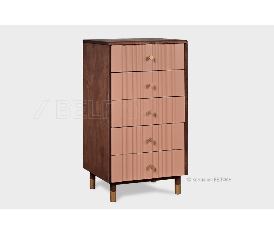 Вдохновлённая движением атласной ткани, коллекция «Меридиан» — это воплощение артистичного подхода к современному интерьеру. Лёгкость форм, графичные волны фрезеровки, высокие ножки и позолоченные акценты делают каждый предмет в коллекции изысканным, но не вычурным. Он будто создан для тех, кто умеет ценить детали и стремится окружить себя эстетикой каждый день. Комод «Меридиан» 5 (высокий) — это утончённое решение для компактного и элегантного хранения. Вертикальная композиция из пяти ящиков делает его визуально лёгким, но при этом вместительным и функциональным. Функциональные особенности: ? Размеры: ширина 600 мм, высота 1120 мм, глубина 452 мм — идеален для небольших пространств или акцента в интерьере. ? Хранение: 5 выдвижных ящиков, удобных для хранения белья, аксессуаров или личных вещей. ? Крашения: широкий выбор цветовых сочетаний, от светлых до глубоких древесных оттенков — под любой интерьер. Экологичность и материалы ? Материалы: массив дуба и МДФ — гармония прочности и выразительности. ? Покрытие: краски на водной основе и натуральное масло — безопасно, экологично, с акцентом на фактуру дерева. В интерьере Этот высокий комод прекрасно дополнит спальню, гардеробную или зону отдыха. Он добавит вертикальную динамику в пространство и создаст визуальную гармонию рядом с зеркалом, креслом или декоративными элементами. Особенно выигрышно смотрится в сочетании с другими изделиями коллекции «Меридиан». Рекомендации по сочетанию ? С изделиями коллекции «Меридиан»: комбинируется с тумбами, туалетным столиком и кроватью из той же линии. ? Сопутствующие аксессуары: дополняется изящным зеркалом, бра в латунном корпусе или кашпо в пастельных тонах. Рекомендация от BELFAN: Изделие поставляется в собранном виде, дополнительной сборки не требуется.