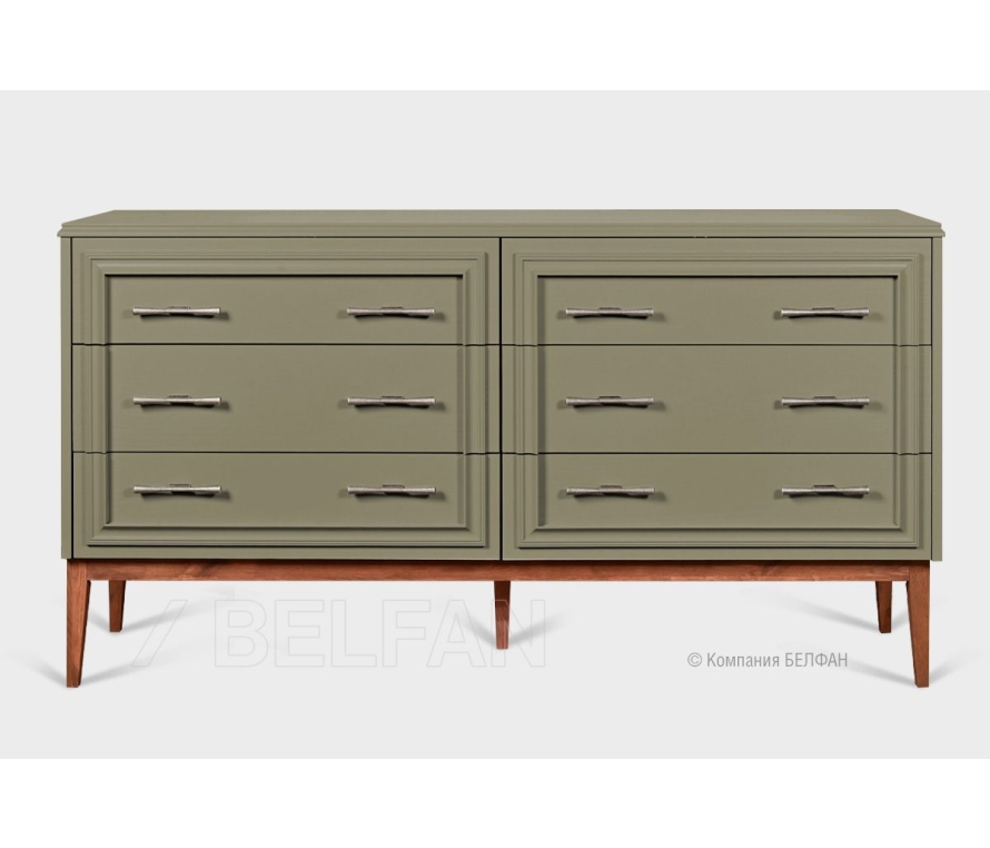 Комод «Сакраменто», 6 ящиков из дуба. Особенности комода с шестью ящиками «Сакраменто»: ? Современный дизайн: американская классика. ? Высокие ножки изделия создают эффект пространственной легкости. ? Прямые лаконичные формы. ? Изящный декор на фасадах в виде багетной рамы создает эффект многоуровневости и классического звучания. ? Эффектная лицевая фурнитура итальянского производителя Bosetti Marella подчеркивает индивидуальность каждого изделия . ? Сочетание глубоких эмалевых оттенков крашения с натуральной текстурой дерева оттенка орех. ? Три больших вместительных ящика для одежды или постельного белья. ? Багетная рама (декор на фасадах), ножки и царговый пояс изделия изготовлены из массива дуба. ? Фасады, столешница, боковые стенки изделия изготовлены из шпонированного дубом МДФ класса безопасности Е1. ? В покрытии изделия используются краски на водной основе и масло из натуральных компонентов, что свидетельствует о безопасности и соответствует высоким стандартам качества. ? Ящики оснащены направляющими с доводчиками (Европейского пр-ва) для комфортного пользования. Видеообзор спальня Сакраменто