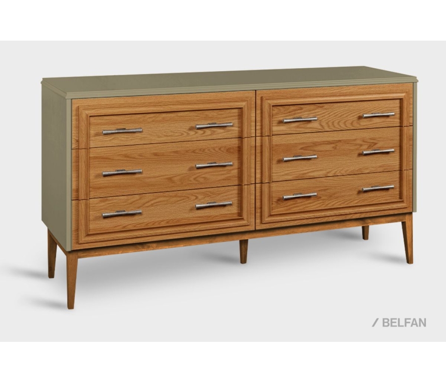 Комод «Сакраменто», 6 ящиков из дуба. Особенности комода с шестью ящиками «Сакраменто»: ? Современный дизайн: американская классика. ? Высокие ножки изделия создают эффект пространственной легкости. ? Прямые лаконичные формы. ? Изящный декор на фасадах в виде багетной рамы создает эффект многоуровневости и классического звучания. ? Эффектная лицевая фурнитура итальянского производителя Bosetti Marella подчеркивает индивидуальность каждого изделия . ? Сочетание глубоких эмалевых оттенков крашения с натуральной текстурой дерева оттенка орех. ? Три больших вместительных ящика для одежды или постельного белья. ? Багетная рама (декор на фасадах), ножки и царговый пояс изделия изготовлены из массива дуба. ? Фасады, столешница, боковые стенки изделия изготовлены из шпонированного дубом МДФ класса безопасности Е1. ? В покрытии изделия используются краски на водной основе и масло из натуральных компонентов, что свидетельствует о безопасности и соответствует высоким стандартам качества. ? Ящики оснащены направляющими с доводчиками (Европейского пр-ва) для комфортного пользования. Скачать схему сборки комода: Видеообзор спальня Сакраменто