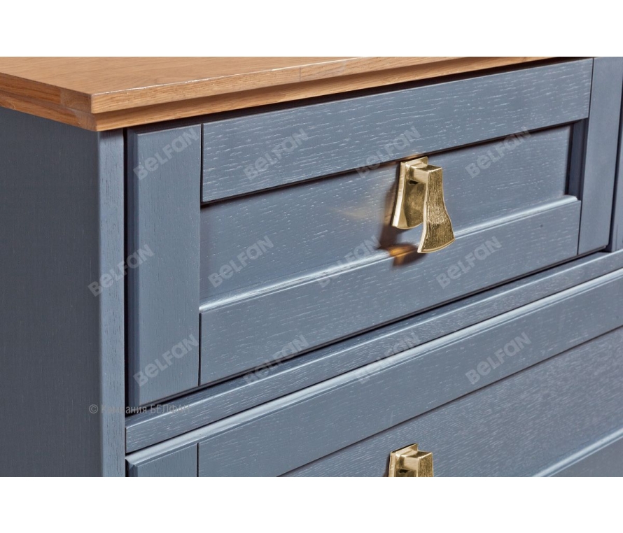Комод «Стюарт» в классическом стиле для Вашей спальни. Особенности комода «Стюарт»: ? Современный классический дизайн. ? Высокие резные ножки изделия с позолоченной фрезеровкой. ? Резные «юбки»-цоколи с позолоченной фрезеровкой. ? Эффектная лицевая фурнитура, выполненная в форме позолоченных кисточек, которая эффектно дополняет позолоченную фрезеровку на ножках и цоколях изделий. ? Сочетание глубоких матовых эмалевых крашений с глянцевыми элементами оттенка натурального дуба. ? Направляющие скрытого монтажа с доводчиками дают ежедневный комфорт использования. ? В покрытии изделия используются краски и лаки на водной основе, что свидетельствует о безопасности и соответствует высоким стандартам качества. ? Фасады и передние ножки изделия изготовлены из массива дуба. ? Боковые стенки, столешница, цоколь и задние ножки изделия изготовлены из шпонированного дубом МДФ класса безопасности Е1. Примерьте тумбу «Стюарт» у себя дома! Пройдите по ссылке. Видеообзор спальни «Стюарт»