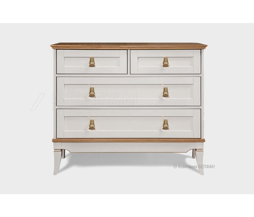 Комод «Стюарт» в классическом стиле для Вашей спальни. Особенности комода «Стюарт»: ? Современный классический дизайн. ? Высокие резные ножки изделия с позолоченной фрезеровкой. ? Резные «юбки»-цоколи с позолоченной фрезеровкой. ? Эффектная лицевая фурнитура, выполненная в форме позолоченных кисточек, которая эффектно дополняет позолоченную фрезеровку на ножках и цоколях изделий. ? Сочетание глубоких матовых эмалевых крашений с глянцевыми элементами оттенка натурального дуба. ? Направляющие скрытого монтажа с доводчиками дают ежедневный комфорт использования. ? В покрытии изделия используются краски и лаки на водной основе, что свидетельствует о безопасности и соответствует высоким стандартам качества. ? Фасады и передние ножки изделия изготовлены из массива дуба. ? Боковые стенки, столешница, цоколь и задние ножки изделия изготовлены из шпонированного дубом МДФ класса безопасности Е1. Примерьте тумбу «Стюарт» у себя дома! Пройдите по ссылке. Видеообзор спальни «Стюарт»