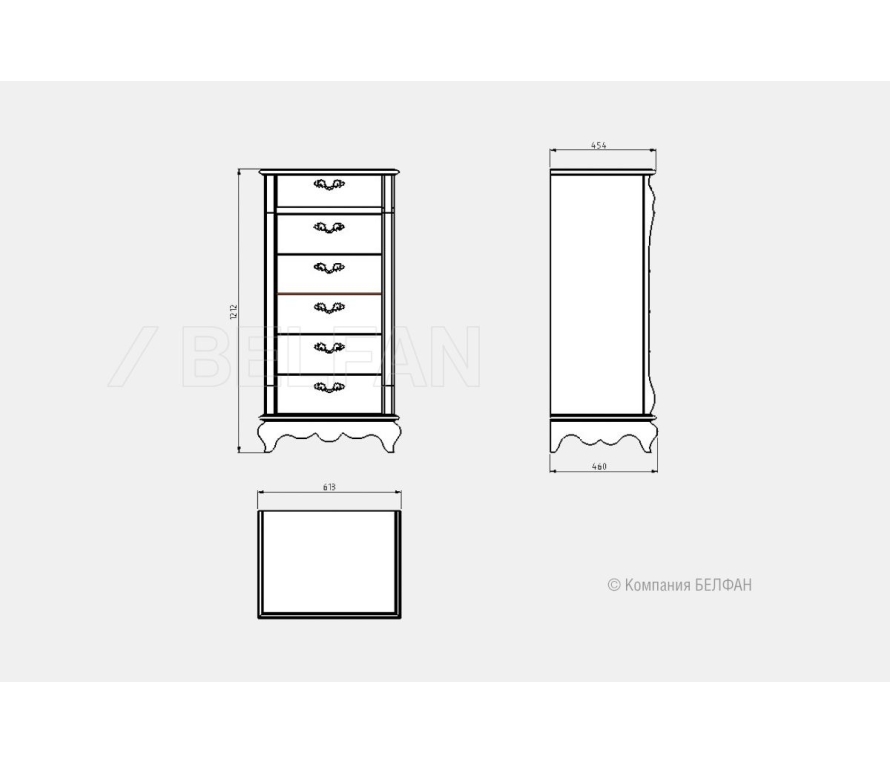 Комод высокий «Оскар» 01 с шестью ящиками, из массива и шпона дуба, он станет достойным украшением любой спальни. Схема комода: