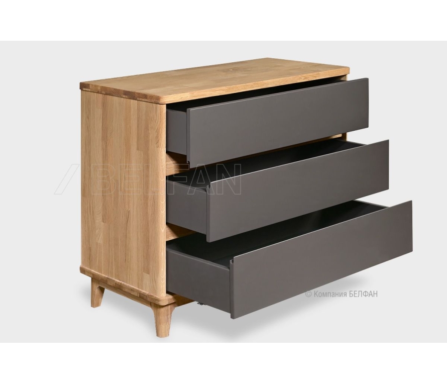 Комод для спальни выполнен в современном стиле Лофт с сочетанием текстуры натурального дерева и акцентных вставок. Светлый оттенок изделия придаст помещению атмосферу упорядоченности и спокойствия. А покрытие натурального дерева исключительно бейц-маслом придаст вам уверенности в том, что для себя и своих близких вы выбираете только самое лучшее! Комод с ящиками отлично подойдёт для спальни, а также детской или подростковой комнаты. Особенности комода Wallstreet (Уоллстрит), 3 ящика: ? Большие вместительные ящики позволяют сложить много разных вещей, в том числе и постельное белье. ? Комод изготовлен из комбинации материалов - массива дуба и эмали. Из массива дерева изготовлен корпус комода, фасады в цвете «бейц-масло». ? Три удобных больших и вместительных ящика для постельного белья и одежды. ? Ящики оснащены надежными шариковыми направляющими с доводчиками, которые обеспечат плавное и бесшумное закрывание. Мебель из массива дерева необыкновенно красива, добротна и славится своим долголетием. Однако, чтобы продлить этот срок, сохранить мебельным изделиям первоначальную элегантность и отличный внешний вид, за ней необходим надлежащий уход. Если у вас появились царапины, следы от кружки или мокрой тряпки, то сервис-бокс от компании BELFAN поможет вам вернуть мебели первозданный вид даже в домашних условиях. Данный сервис-бокс подходит только для мебели в крашении бейц-масло. Примерьте комод «Wallstreet» у себя дома! Пройдите по ссылке. Видеообзор комода "Wallstreet" 3
