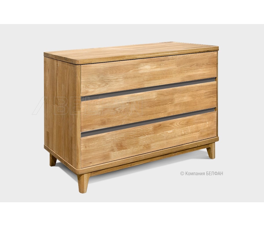 Комод для спальни выполнен в современном стиле Лофт с сочетанием текстуры натурального дерева и акцентных вставок. Светлый оттенок изделия придаст помещению атмосферу упорядоченности и спокойствия. А покрытие натурального дерева исключительно бейц-маслом придаст вам уверенности в том, что для себя и своих близких вы выбираете только самое лучшее! Комод с ящиками отлично подойдёт для спальни, а также детской или подростковой комнаты. Особенности комода Wallstreet (Уоллстрит), 3 ящика: ? Большие вместительные ящики позволяют сложить много разных вещей, в том числе и постельное белье. ? Комод изготовлен из комбинации материалов - массива дуба и эмали. Из массива дерева изготовлен корпус комода, фасады в цвете «бейц-масло». ? Три удобных больших и вместительных ящика для постельного белья и одежды. ? Ящики оснащены надежными шариковыми направляющими с доводчиками, которые обеспечат плавное и бесшумное закрывание. Мебель из массива дерева необыкновенно красива, добротна и славится своим долголетием. Однако, чтобы продлить этот срок, сохранить мебельным изделиям первоначальную элегантность и отличный внешний вид, за ней необходим надлежащий уход. Если у вас появились царапины, следы от кружки или мокрой тряпки, то сервис-бокс от компании BELFAN поможет вам вернуть мебели первозданный вид даже в домашних условиях. Данный сервис-бокс подходит только для мебели в крашении бейц-масло. Примерьте комод «Wallstreet» у себя дома! Пройдите по ссылке. Видеообзор комода "Wallstreet" 3