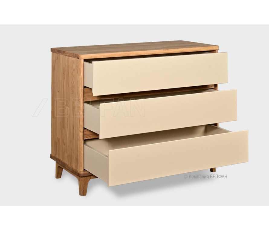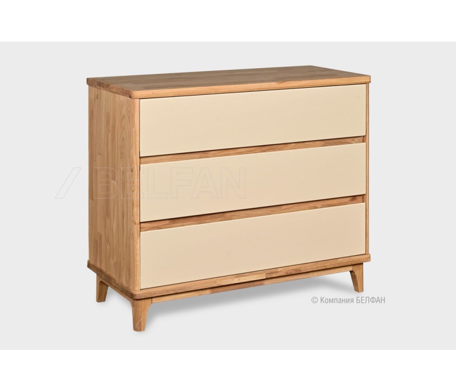 Комод для спальни выполнен в современном стиле Лофт с сочетанием текстуры натурального дерева и акцентных вставок. Светлый оттенок изделия придаст помещению атмосферу упорядоченности и спокойствия. А покрытие натурального дерева исключительно бейц-маслом придаст вам уверенности в том, что для себя и своих близких вы выбираете только самое лучшее! Комод с ящиками отлично подойдёт для спальни, а также детской или подростковой комнаты. Особенности комода Wallstreet (Уоллстрит), 3 ящика: ? Большие вместительные ящики позволяют сложить много разных вещей, в том числе и постельное белье. ? Комод изготовлен из комбинации материалов - массива дуба и эмали. Из массива дерева изготовлен корпус комода, фасады в цвете «бейц-масло». ? Три удобных больших и вместительных ящика для постельного белья и одежды. ? Ящики оснащены надежными шариковыми направляющими с доводчиками, которые обеспечат плавное и бесшумное закрывание. Мебель из массива дерева необыкновенно красива, добротна и славится своим долголетием. Однако, чтобы продлить этот срок, сохранить мебельным изделиям первоначальную элегантность и отличный внешний вид, за ней необходим надлежащий уход. Если у вас появились царапины, следы от кружки или мокрой тряпки, то сервис-бокс от компании BELFAN поможет вам вернуть мебели первозданный вид даже в домашних условиях. Данный сервис-бокс подходит только для мебели в крашении бейц-масло. Примерьте комод «Wallstreet» у себя дома! Пройдите по ссылке. Видеообзор комода "Wallstreet" 3