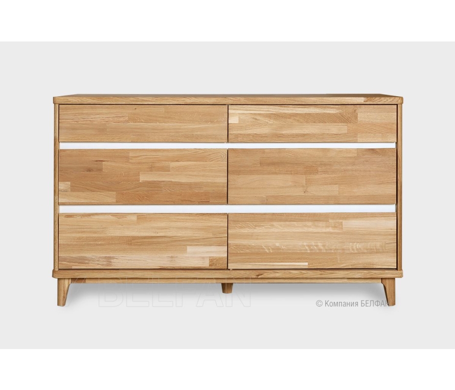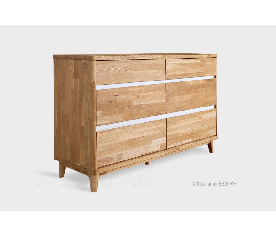 Особенности широкого комода Wallstreet (Уоллстрит) 6: ? Большие вместительные ящики позволяют сложить много разных вещей, в том числе и постельное белье. ? Комод изготовлен из комбинации материалов - массива дуба и эмали. Из массива дерева изготовлен корпус комода, фасады в цвете «бейц-масло». ? Три удобных больших и вместительных ящика для постельного белья и одежды. ? Ящики оснащены надежными шариковыми направляющими с доводчиками, которые обеспечат плавное и бесшумное закрывание. Мебель из массива дерева необыкновенно красива, добротна и славится своим долголетием. Однако, чтобы продлить этот срок, сохранить мебельным изделиям первоначальную элегантность и отличный внешний вид, за ней необходим надлежащий уход. Если у вас появились царапины, следы от кружки или мокрой тряпки, то сервис-бокс от компании BELFAN поможет вам вернуть мебели первозданный вид даже в домашних условиях. Данный сервис-бокс подходит только для мебели в крашении бейц-масло.