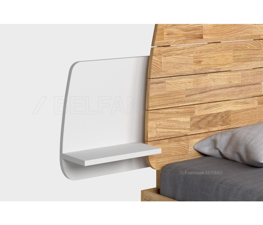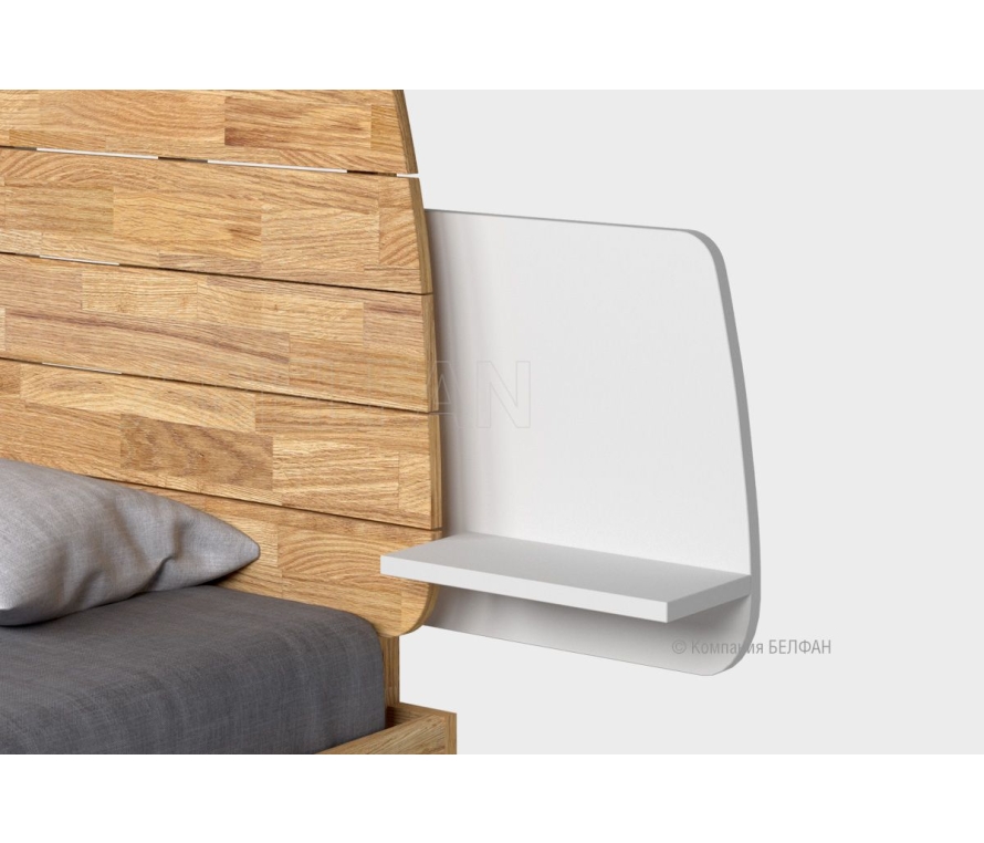 Компактная прикроватная полка в современном стиле Лофт – отличная замена прикроватной тумбе. Прикроватная полка не занимает много места, но выполняет свою задачу - на нее можно положить телефон, книгу или поставить стакан с водой. Особенности полки прикроватной Wallstreet (Уоллстрит): ? Полки в цвете «бейц-масло серый дуб, беленый дуб, графит» изготовлены из массива дуба – экологичного и натурального материала. Полки в цвете «белый, антрацит, нюд» изготовлены из плиты, покрыта эмалью. ? Полка крепится к ламелям изголовья и опоре изголовья – она функциональна и не занимает много места. ? Габариты щита 620х450х20 мм. Габариты полки 350х250х20 мм (ширина видимой части изделия 380 мм). ? Универсальное крепление - полку можно навешивать как с правой, так и с левой стороны от кровати по вашему желанию. ? Полку можно крепить к кроватям Кровать "Wallstreet" (комбинированная), Кровать "Wallstreet" и Кровать "Wallstreet" (мягкое изголовье). ? Массив дуба покрыт только натуральным бейц-маслом, которое защищает древесину от внешнего воздействия и придаёт ей приятный медовый оттенок. Мебель из массива дерева необыкновенно красива, добротна и славится своим долголетием. Однако, чтобы продлить этот срок, сохранить мебельным изделиям первоначальную элегантность и отличный внешний вид, за ней необходим надлежащий уход. Если у вас появились царапины, следы от кружки или мокрой тряпки, то сервис-бокс от компании BELFAN поможет вам вернуть мебели первозданный вид даже в домашних условиях. Данный сервис-бокс подходит только для мебели в крашении бейц-масло. Скачать схему сборки и крепления прикроватной полки: Видеообзор прикроватная полка Wallstreet