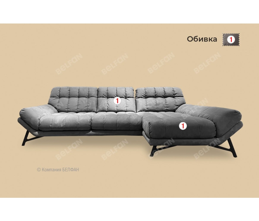 Особенности дивана с оттоманкой «Space»: ? Диван по мягкости посадки относится к категории Elastic (упругий). ? Каркас спинки и боковин выполнен из гнутой фанеры класса Е 1 - является экологичным продуктом, предназначенным для изготовления детской мебели, укрепленный металлической системой. ? Наполнение подушки сиденья ППУ + высокоэластичный пенополиуретан (ЛППУ) на основе резинотканевых ремней. ? Наполнение подушки спинки и боковин ППУ + высокоэластичный пенополиуретан (ЛППУ). ? Опоры металлические. ? Шагающий механизм HIP-HOP с помощью которого Вы с легкостью сможете регулировать глубину посадочного места в положение релакс. В спинку установлен «шагающий» механизм типа «Hip-Hop», который позволяет перемещать подушку спинки относительно сидения. ? Модель создана с учетом анатомических особенностей. ? Изображение на сайте дает общее представление о товаре. Цвет на фото может отличаться от реального из-за особенностей цветопередачи мониторов.