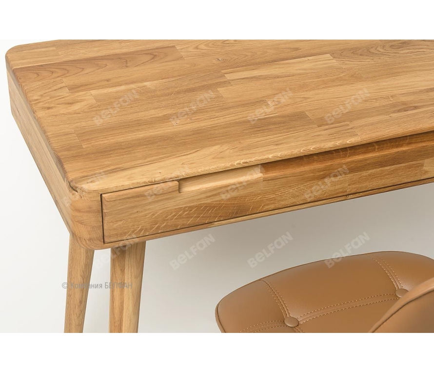 Туалетный столик «Ирвинг» (Irving) с выдвижным ящиком на 3 секции, изготовлен из массива дуба, стиль Mid-century modern. Мебель из массива дерева необыкновенно красива, добротна и славится своим долголетием. Однако, чтобы продлить этот срок, сохранить мебельным изделиям первоначальную элегантность и отличный внешний вид, за ней необходим надлежащий уход. Если у вас появились царапины, следы от кружки или мокрой тряпки, то сервис-бокс от компании BELFAN поможет вам вернуть мебели первозданный вид даже в домашних условиях. Данный сервис-бокс подходит только для мебели в крашении бейц-масло. Схема стола туалетного: Скачать схему сборки стола: