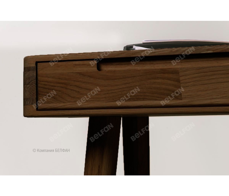 Туалетный столик «Ирвинг» (Irving) с выдвижным ящиком на 3 секции, изготовлен из массива дуба, стиль Mid-century modern. Мебель из массива дерева необыкновенно красива, добротна и славится своим долголетием. Однако, чтобы продлить этот срок, сохранить мебельным изделиям первоначальную элегантность и отличный внешний вид, за ней необходим надлежащий уход. Если у вас появились царапины, следы от кружки или мокрой тряпки, то сервис-бокс от компании BELFAN поможет вам вернуть мебели первозданный вид даже в домашних условиях. Данный сервис-бокс подходит только для мебели в крашении бейц-масло. Схема стола туалетного: Скачать схему сборки стола: