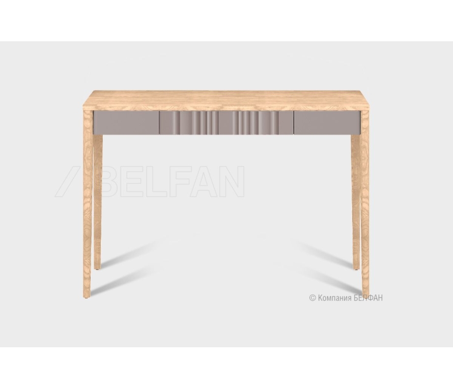 Коллекция «Меридиан» — это мебель, которая вдохновляет каждый день. Минималистичные формы, высокие ножки, изысканная позолоченная фурнитура и знаменитые волнообразные фасады, напоминающие драпировку атласной ткани, превращают привычные предметы в интерьерные шедевры. Эта коллекция создана для тех, кто ценит гармонию линий, мягкость фактур и элегантный стиль. Туалетный стол «Меридиан» с декором — это не просто столик для ухода за собой. Это ваш личный островок красоты и вдохновения. Его элегантная форма и выразительный декоративный фасад делают стол центральным элементом спальни или гардеробной. Функциональные особенности: ? Габариты: ширина 1125 мм ? высота 760 мм ? глубина 550 мм — компактный и удобный формат для комфортной бьюти-зоны. ? Выдвижной ящик для хранения косметики или любимых мелочей. ? Крашения: огромный выбор стильных сочетаний — от пастельных до насыщенных древесных оттенков. Экологичность и материалы: ? Стол изготовлен из 100% массива дуба + МДФ — прочность, стабильность, тактильная теплотность. ? Покрытие: краски на водной основе + масло из натуральных компонентов. Используемые покрытия полностью безопасны, подходят для жилых помещений, а натуральные масла сохраняют тёплую тактильность поверхности. В интерьере Этот стол придаст любой спальне изысканность и лёгкость. Высокие ножки зрительно облегчают пространство, а волнообразный фасад задаёт декоративный ритм. Особенно красиво сочетается с мягким текстилем и светлым фоном. Рекомендации по сочетанию ? Внутри коллекции «Меридиан»: прекрасно сочетается с кроватью с мягким изголовьем, комодом 6 и прикроватными тумбами — создаёт гармоничное пространство спальни. ? Сопутствующие аксессуары: зеркало в раме из массива дуба или в пастельном цвете, пуф с мягкой обивкой, настольная лампа с тёплым светом. Рекомендация от BELFAN: Установите стол в зоне с хорошим естественным или акцентным освещением. Для ухода за поверхностями используйте мягкую ткань и средства, рекомендованные для мебели с масляным покрытием.